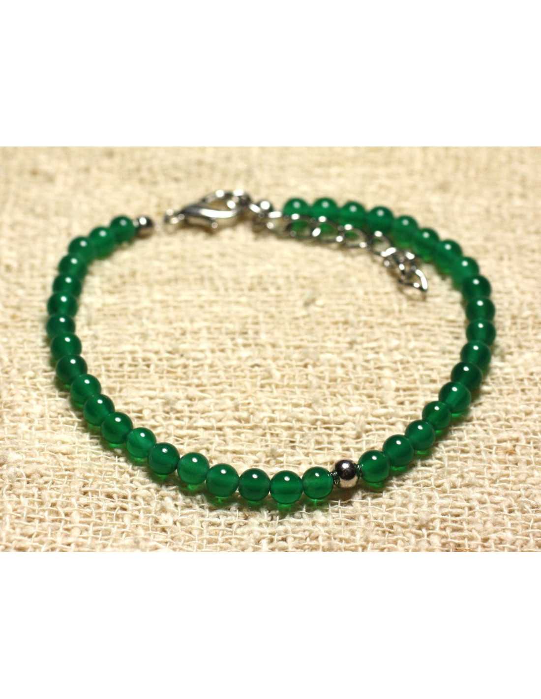 Bracelet Argent 925 et Pierre semi précieuse Onyx Vert 4mm