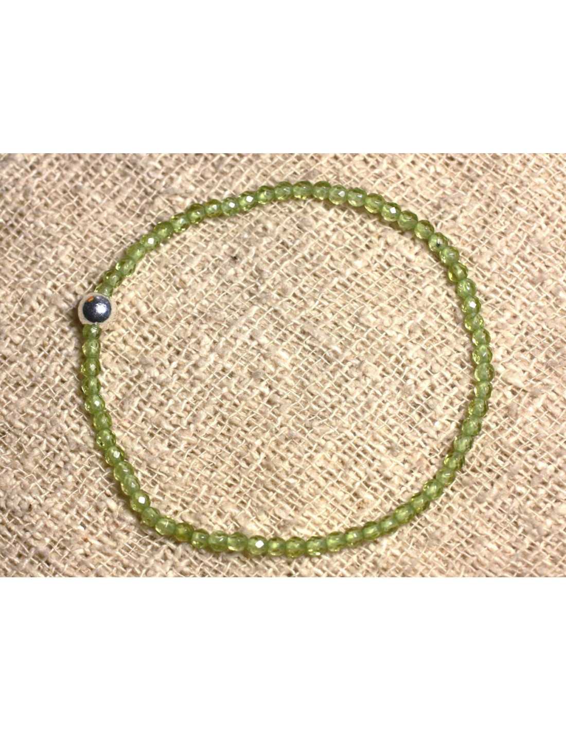 Bracelet Argent 925 et Pierre semi précieuse - Péridot Facetté 3mm