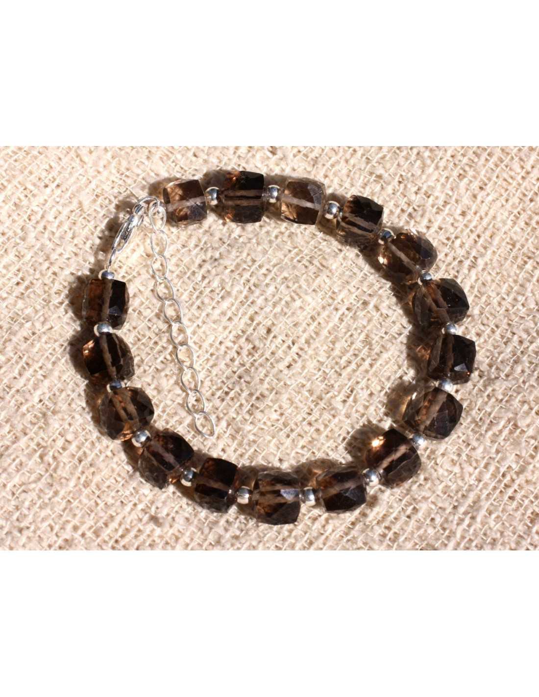 Bracelet Argent 925 et Pierre - Quartz Fumé Cubes Facettés 7-8mm