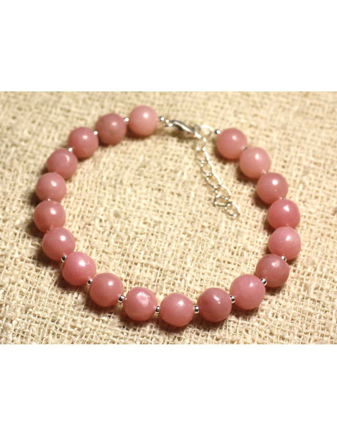Bracelet Argent 925 et Pierre semi précieuse - Opale Rose 8mm