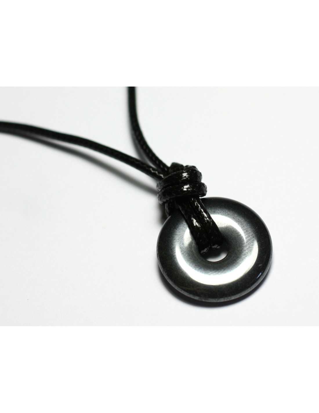 Collier Pendentif Pierre Hematite Rond Cercle Anneau Donut Pi 20mm Métal gris noir argenté