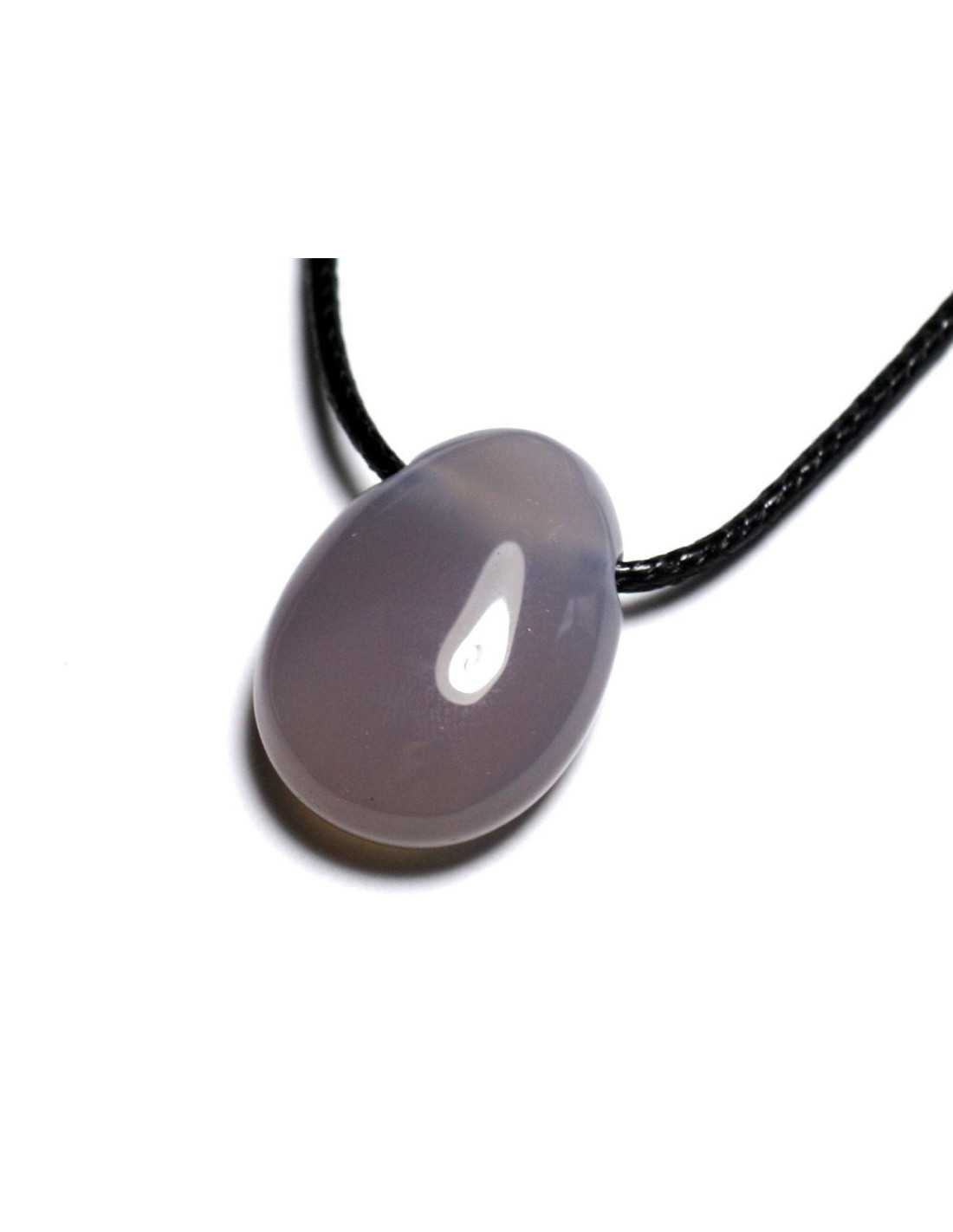 Collier Pendentif Pierre semi précieuse - Agate grise Goutte 25mm