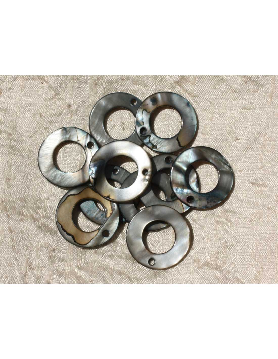 10pc - Perles Breloques Pendentifs Nacre Donuts Cercles 25mm gris noir marron - 4558550019318