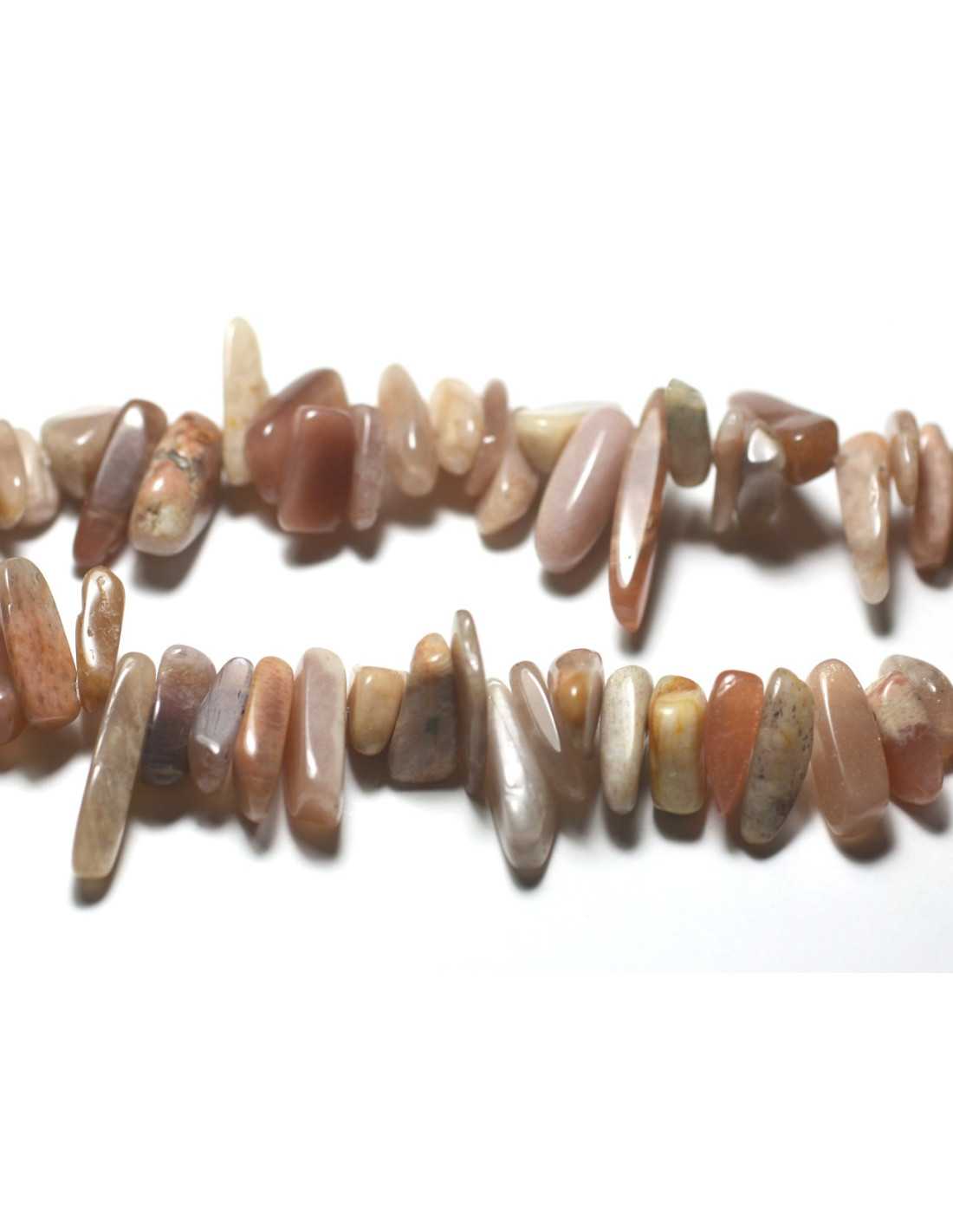 Fil 39cm 90pc environ - Perles Pierre de Lune Chips Rocailles Batonnets 10-23mm gris rose orange irisé