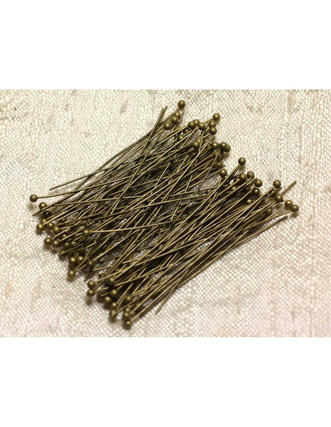 100pc - Tiges Clous à Tête Boule Métal Bronze Qualité 40 x 0.5 x 1.8 mm