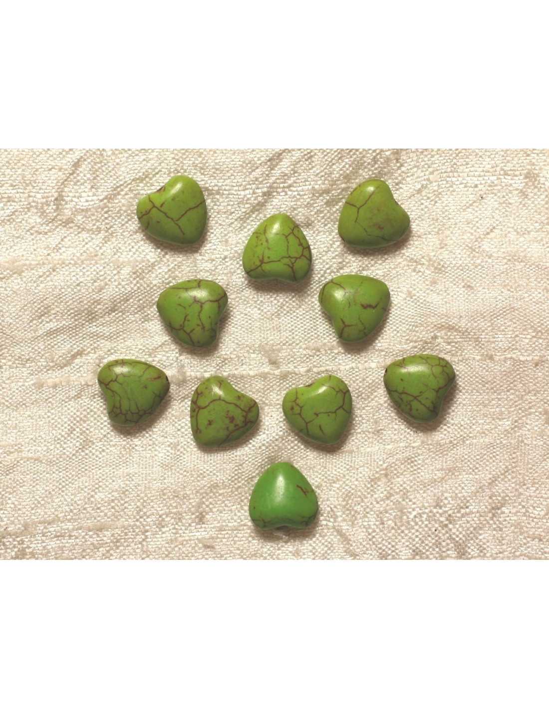 10pc - Perles Turquoise synthèse Coeurs 11mm Vert