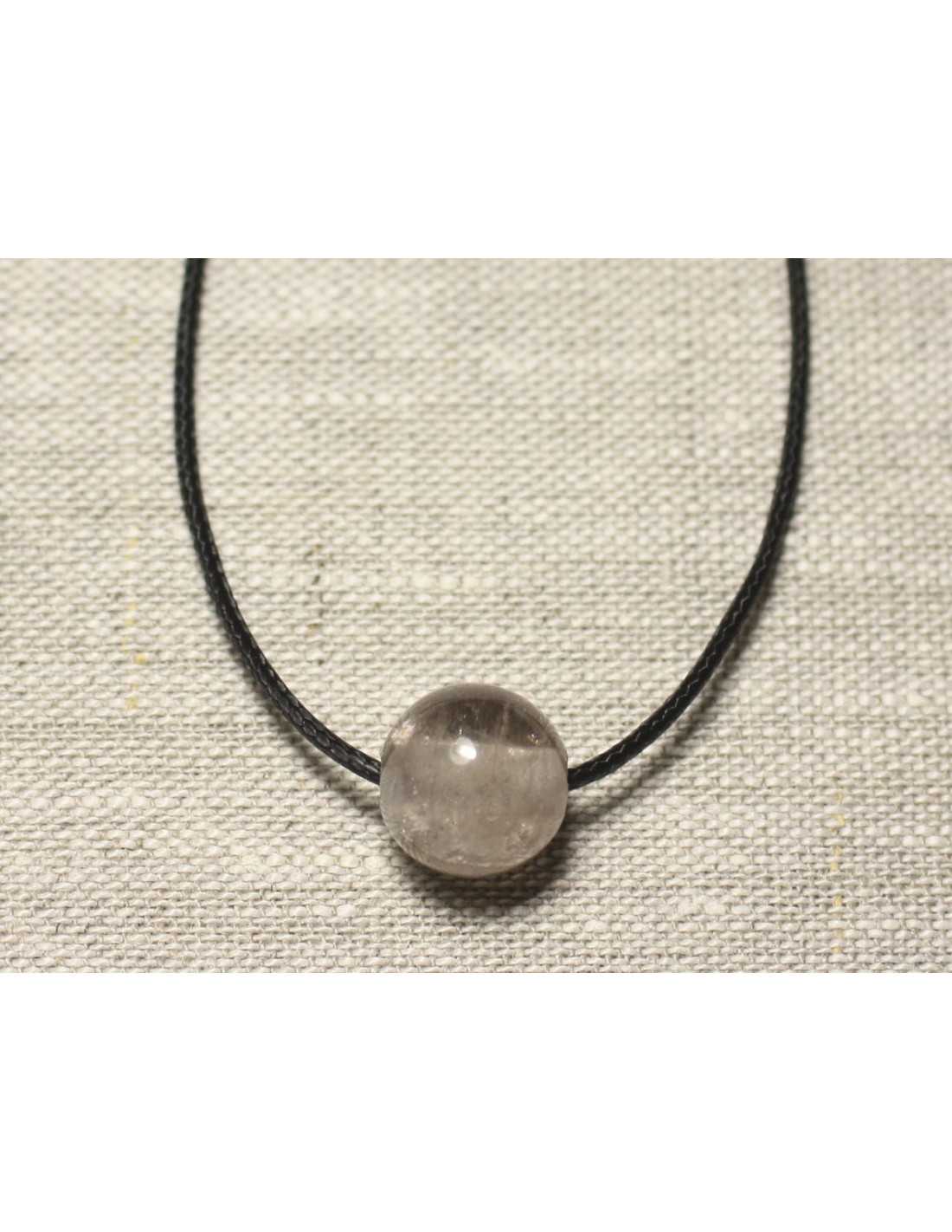 Collier Pendentif Pierre semi précieuse - Quartz Fumé Boule 14mm