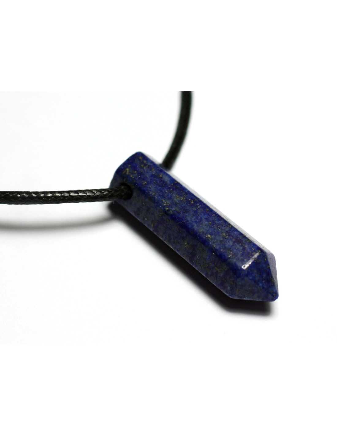 Collier Perle Pendentif Pierre Crayon Pointe Facetté 30mm Lapis Lazuli bleu nuit or doré