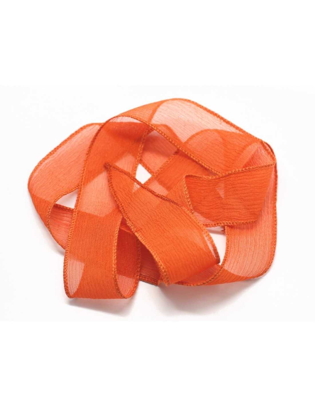 1pc - Collier Ruban Soie teint à la main 85 x 2.5cm Orange (ref SOIE124)