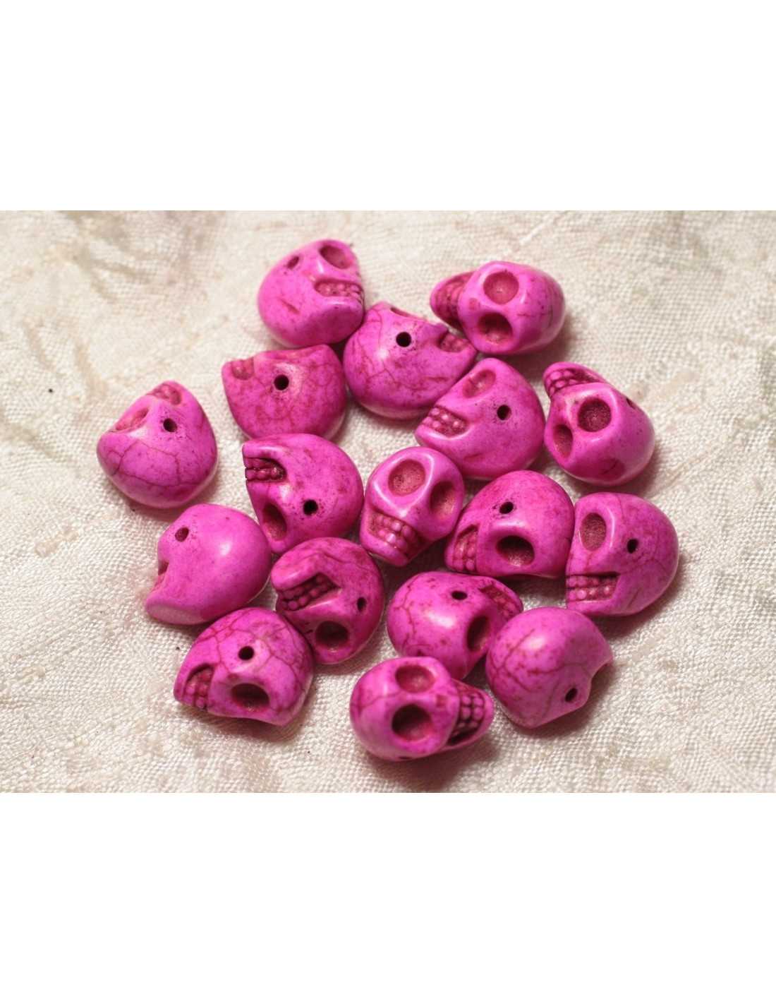 10pc - Perles Pierre Turquoise synthese Crane Tete de Mort 14x10mm Rose Fluo - 4558550030252