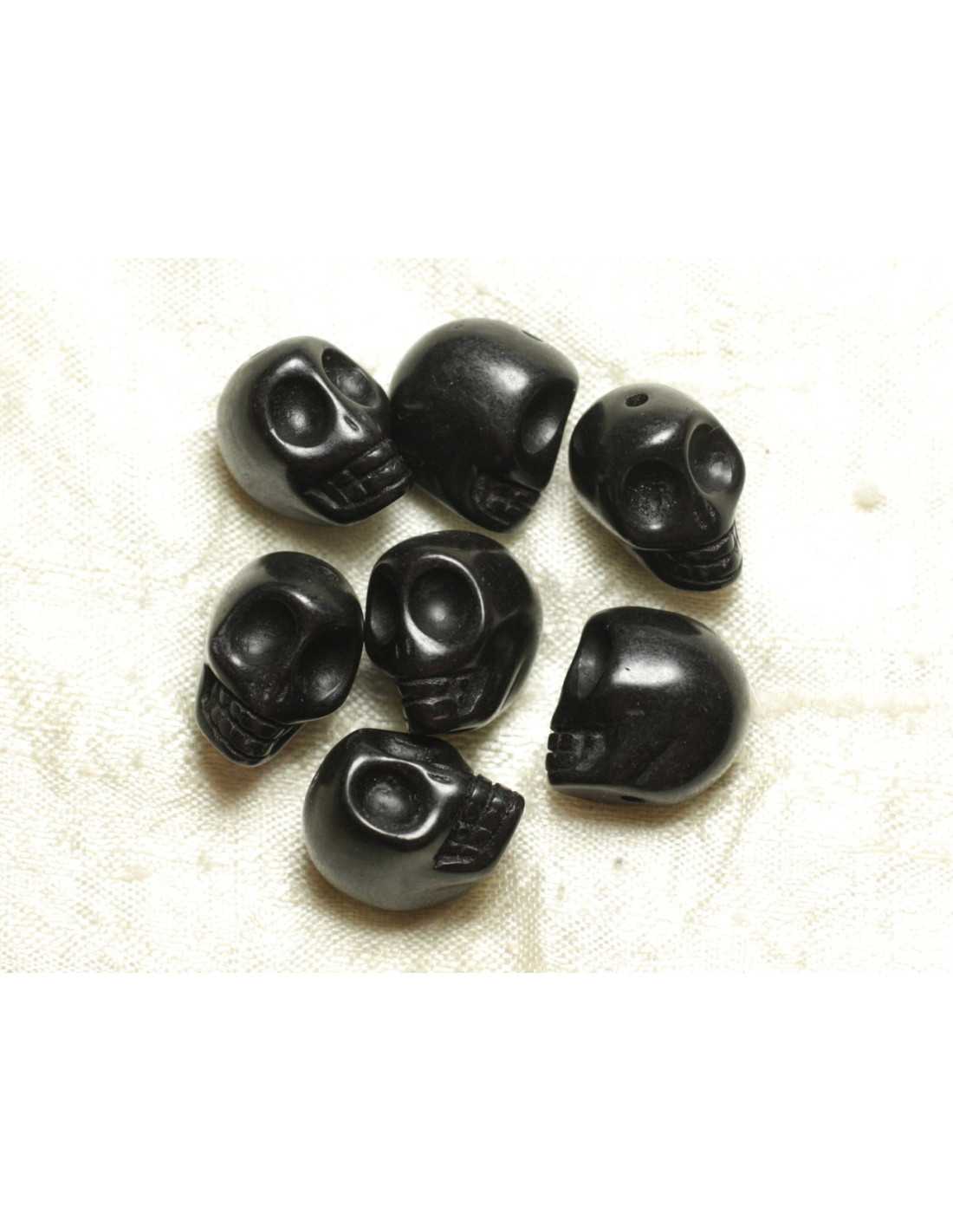 15pc - Perles Crâne Tête de Mort Turquoise Synthèse reconstituée 8mm Noir