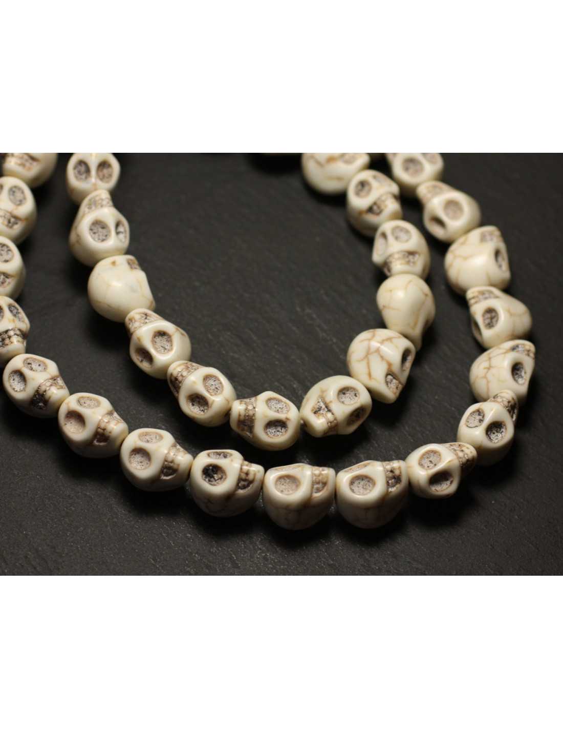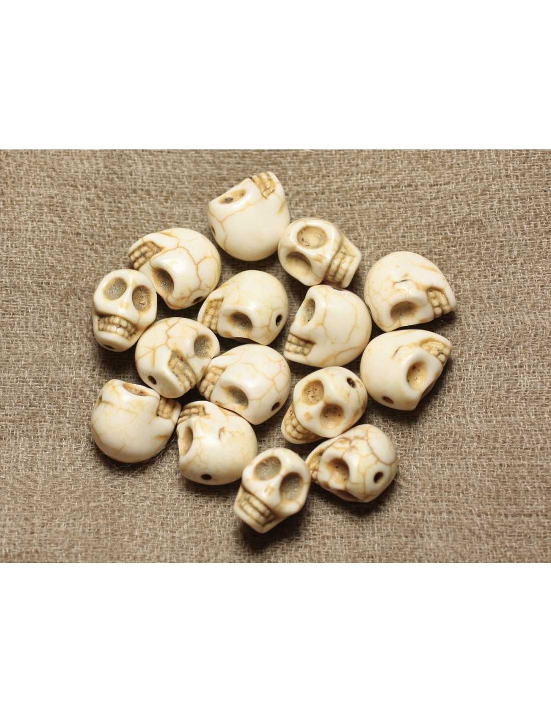 10pc - Perles Pierre Turquoise Synthese Crane Tete de Mort 14mm Blanc - 4558550030337