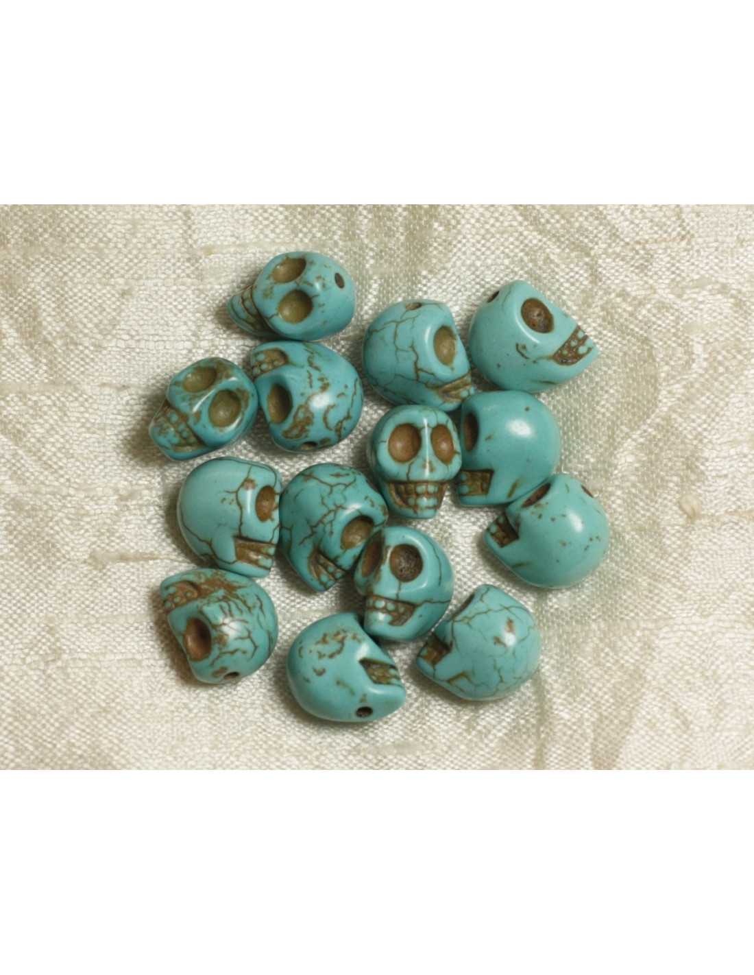 10pc - Perles Pierre Turquoise Synthese Crane Tete de Mort 14mm Bleu Turquoise - 4558550036360