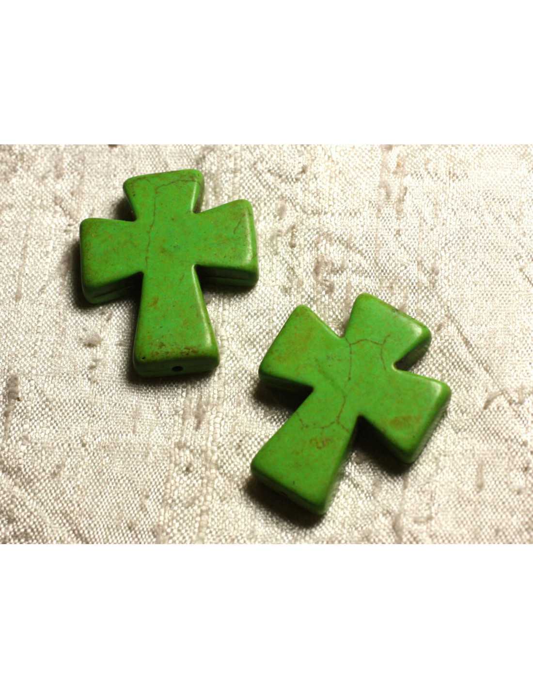 Fil 39cm 11pc env - Perles de Pierre Turquoise Synthèse Croix 35x30mm Vert