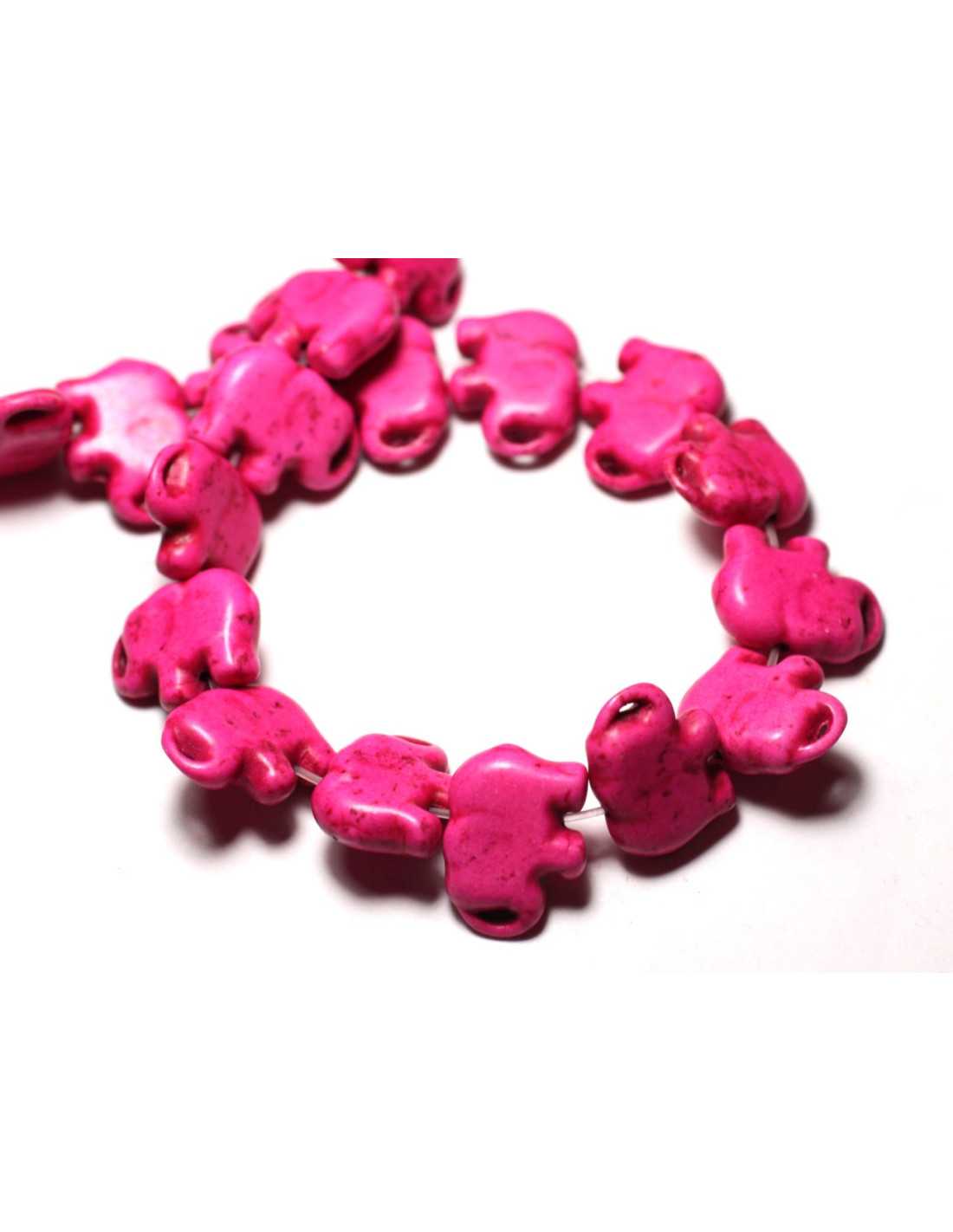 1pc - Grande Perle Pendentif en Pierre Turquoise synthèse - Elephant 40mm Rose Fluo - 7427039730884