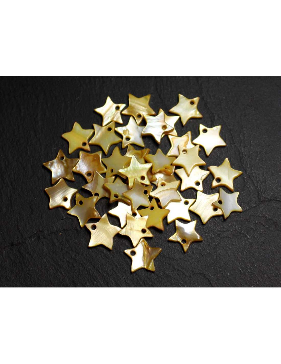 10pc - Pendentifs Breloques Nacre Dorée Etoiles 12mm