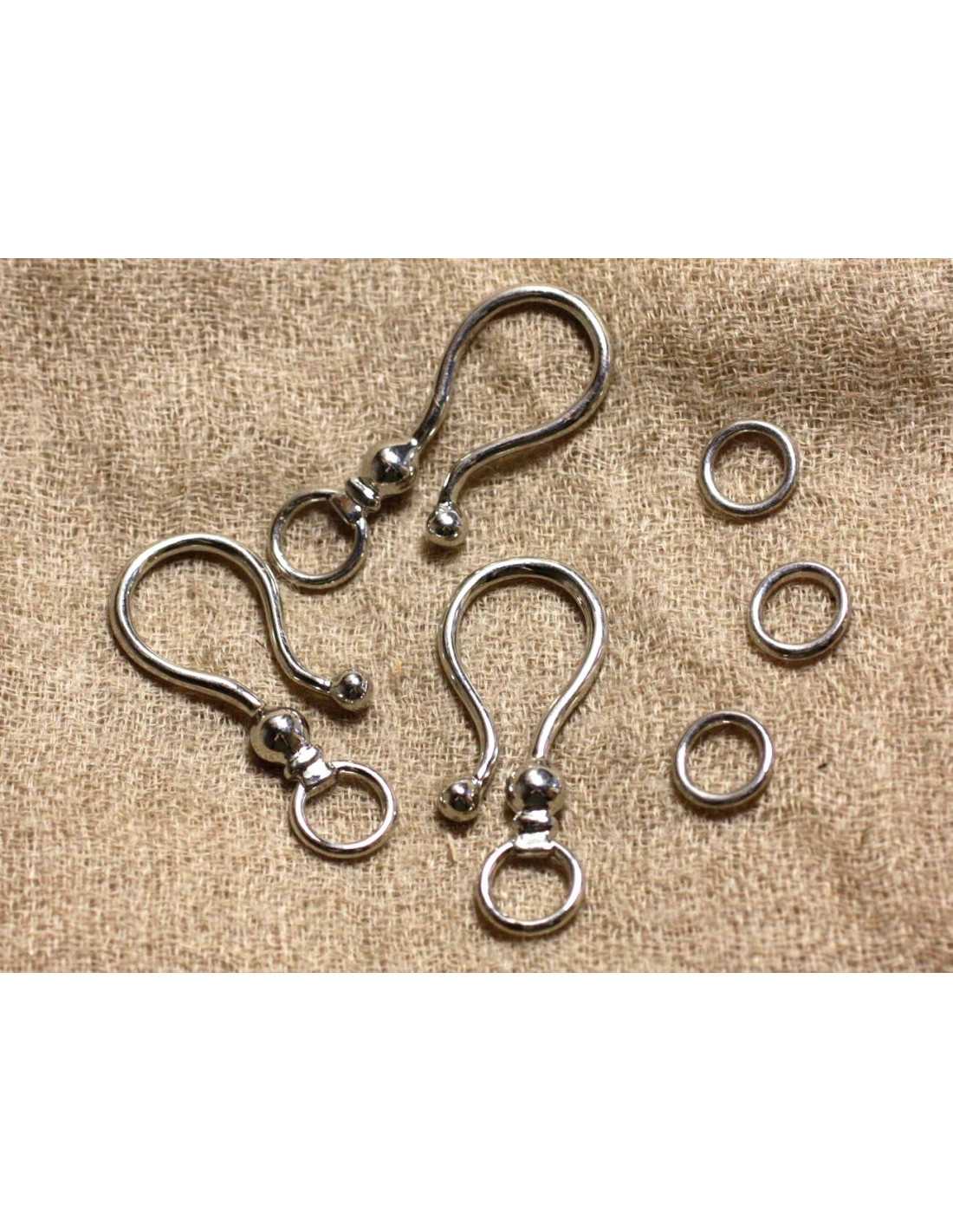10pc - Grands Fermoirs Crochets Métal Argenté 39mm