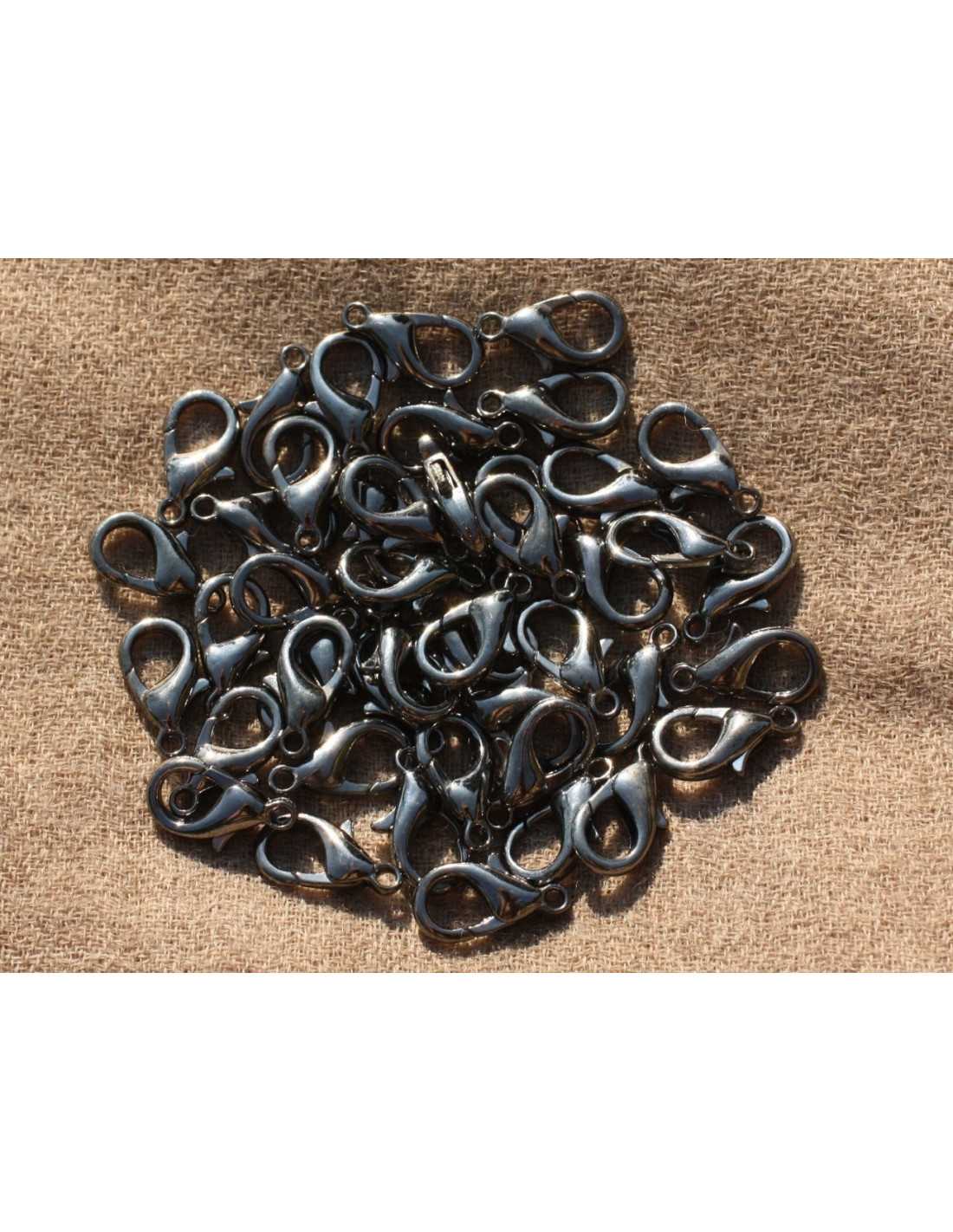 20pc - Fermoirs Mousquetons 16mm Métal Noir Qualité