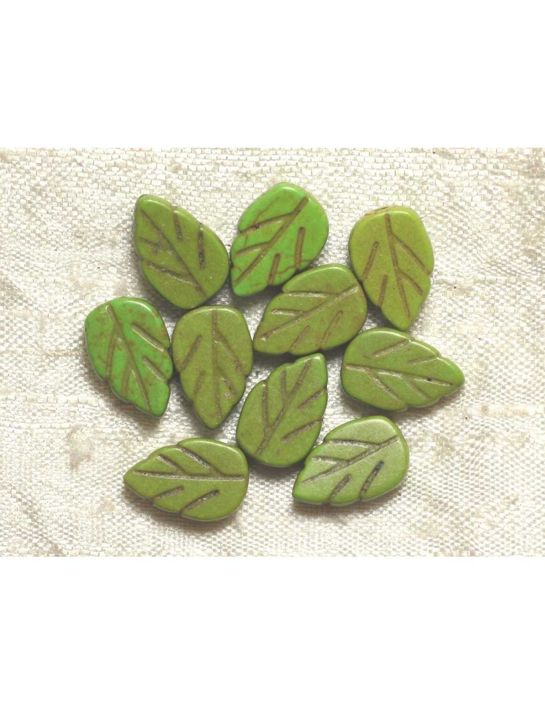 10pc - Perles Turquoise synthèse Feuilles Vertes 14mm
