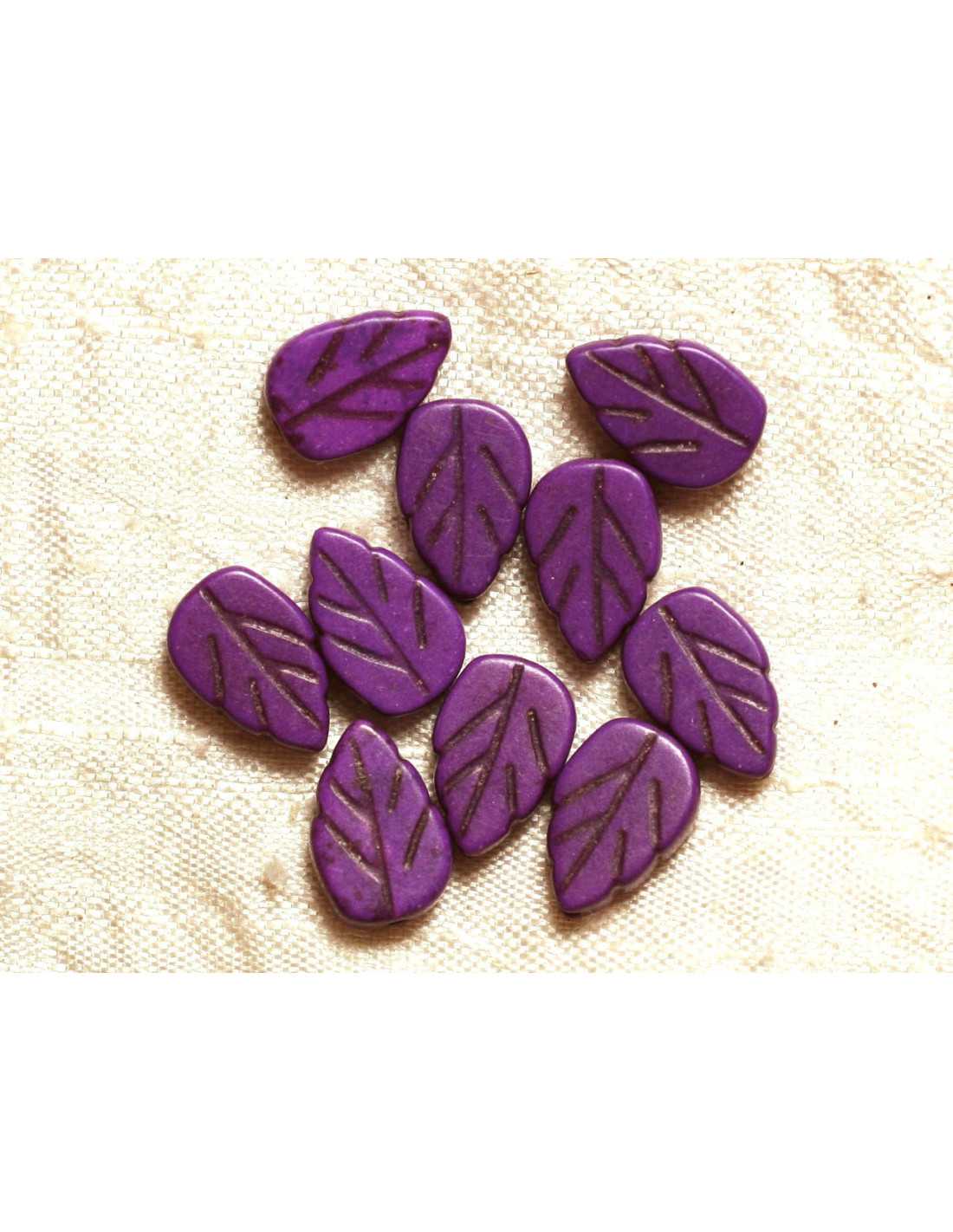 Fil 39cm 26pc env - Perles de Pierre Turquoise Synthèse Feuilles 14mm Violet