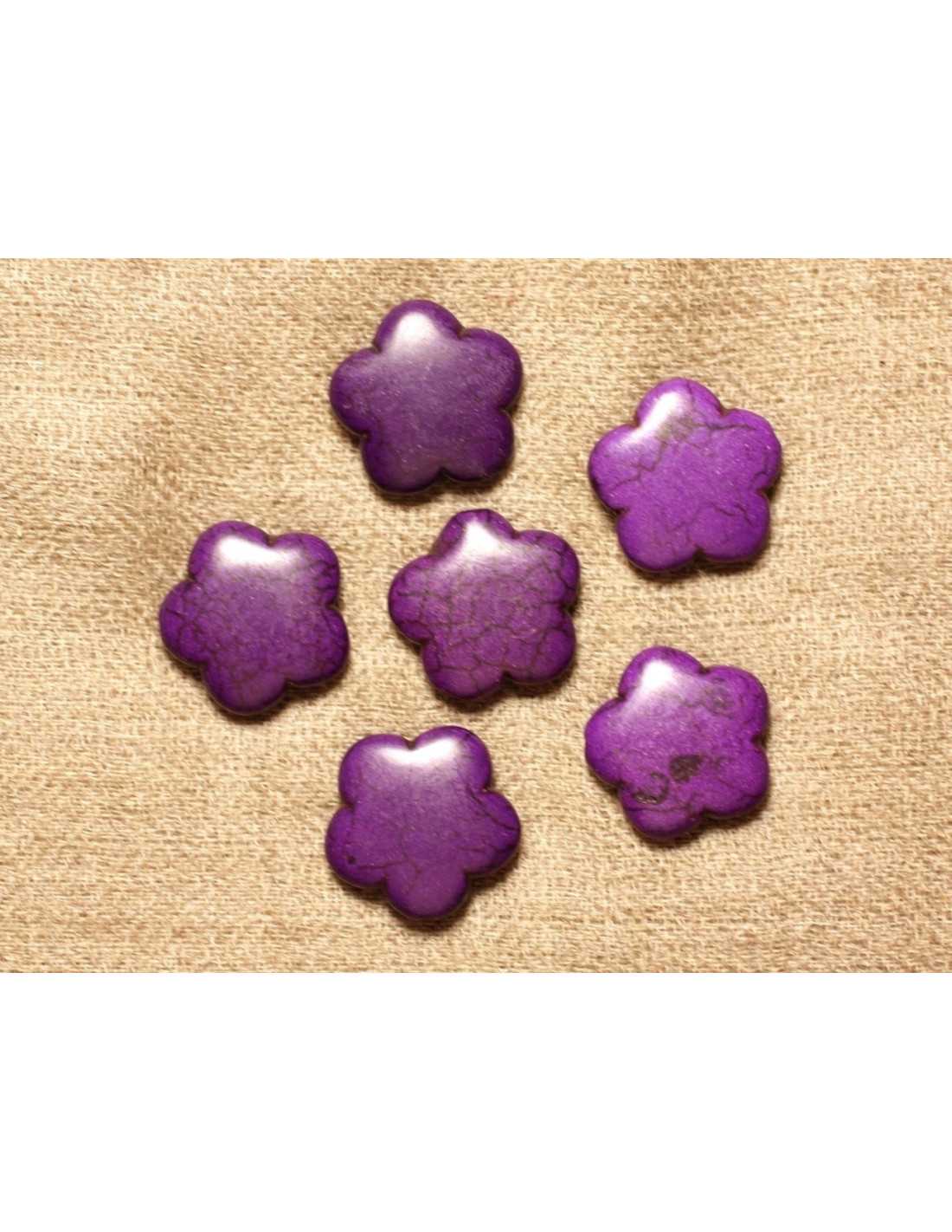 5pc - Perles Turquoise synthèse Fleurs 20mm - Violet