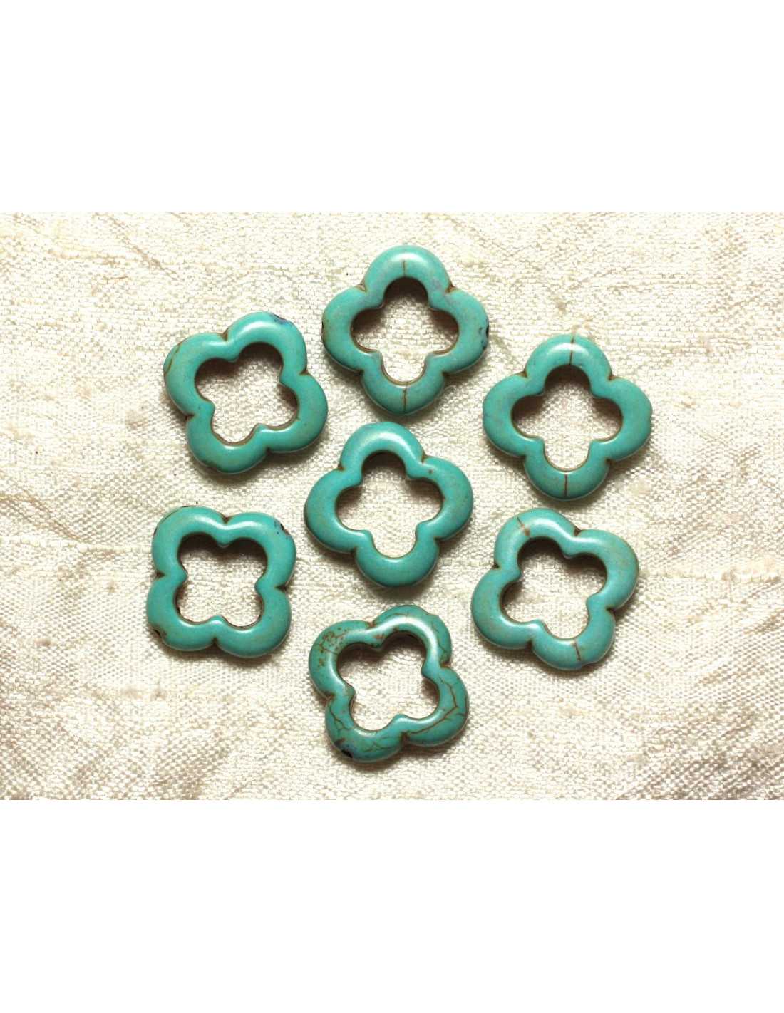 5pc - Perles Pierre Turquoise Synthese Fleur Trefle 4 feuilles 20mm Bleu Turquoise - 7427039746908