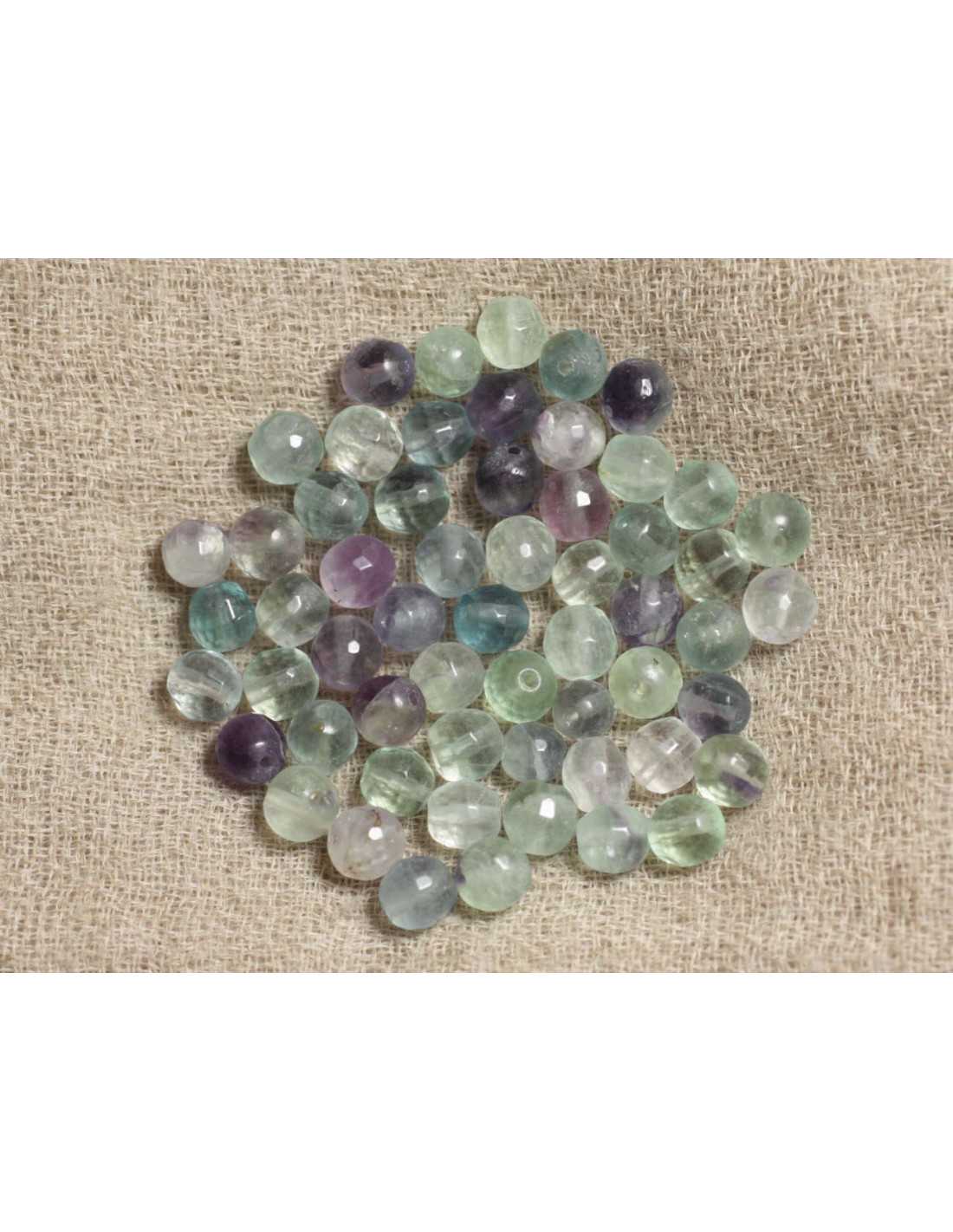 Fil 39cm 65pc environ - Perles Pierre Fluorite multicolore Boules Facettées 6mm