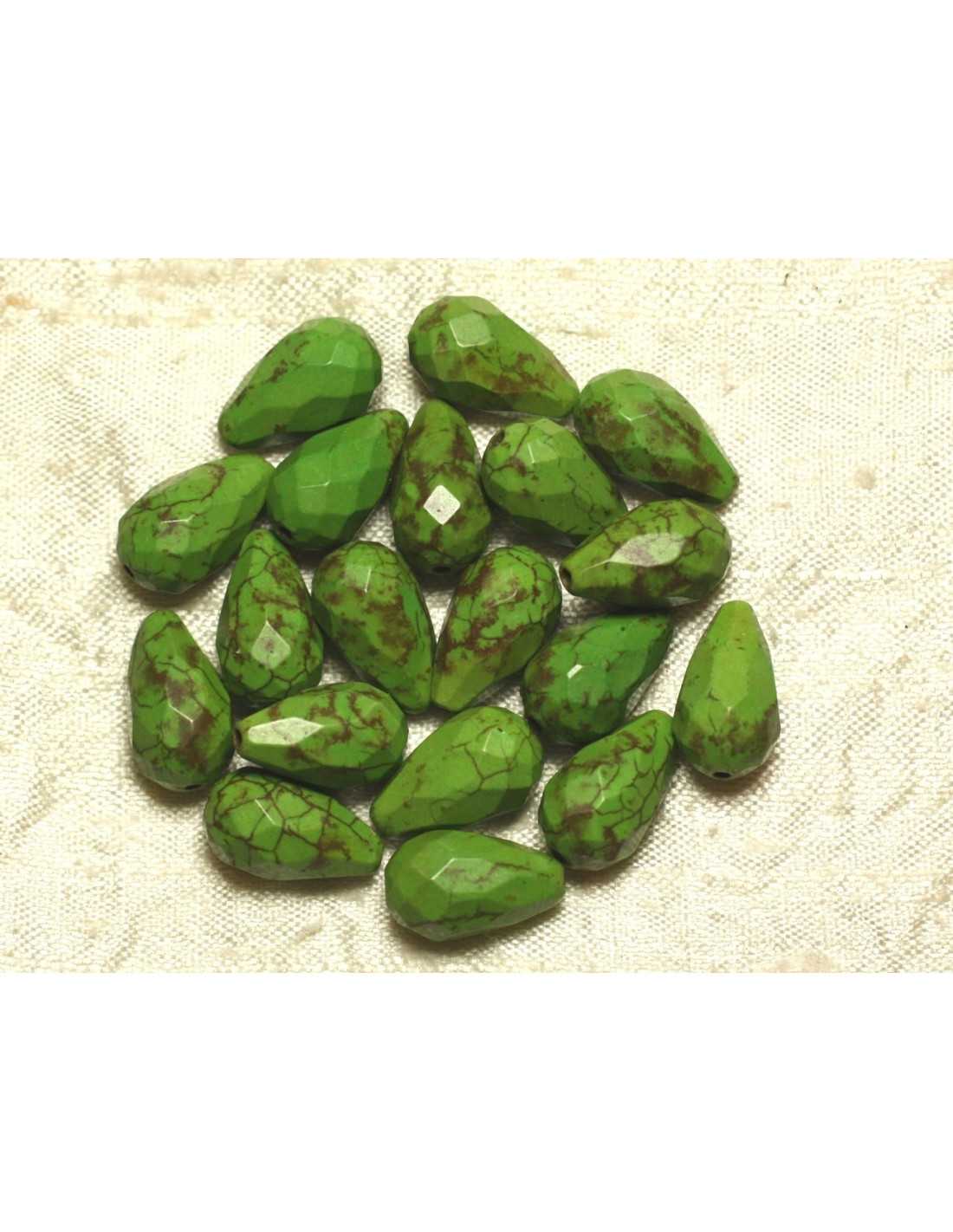 4pc - Perles Turquoise synthèse Gouttes Facettées 16x9mm Vert