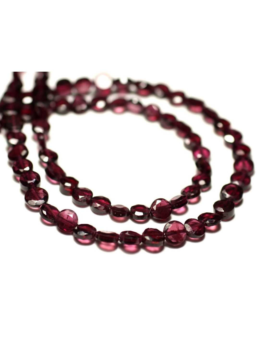 Fil 39cm 84pc env - Perles de Pierre - Grenat Palets Facettés 4-5mm