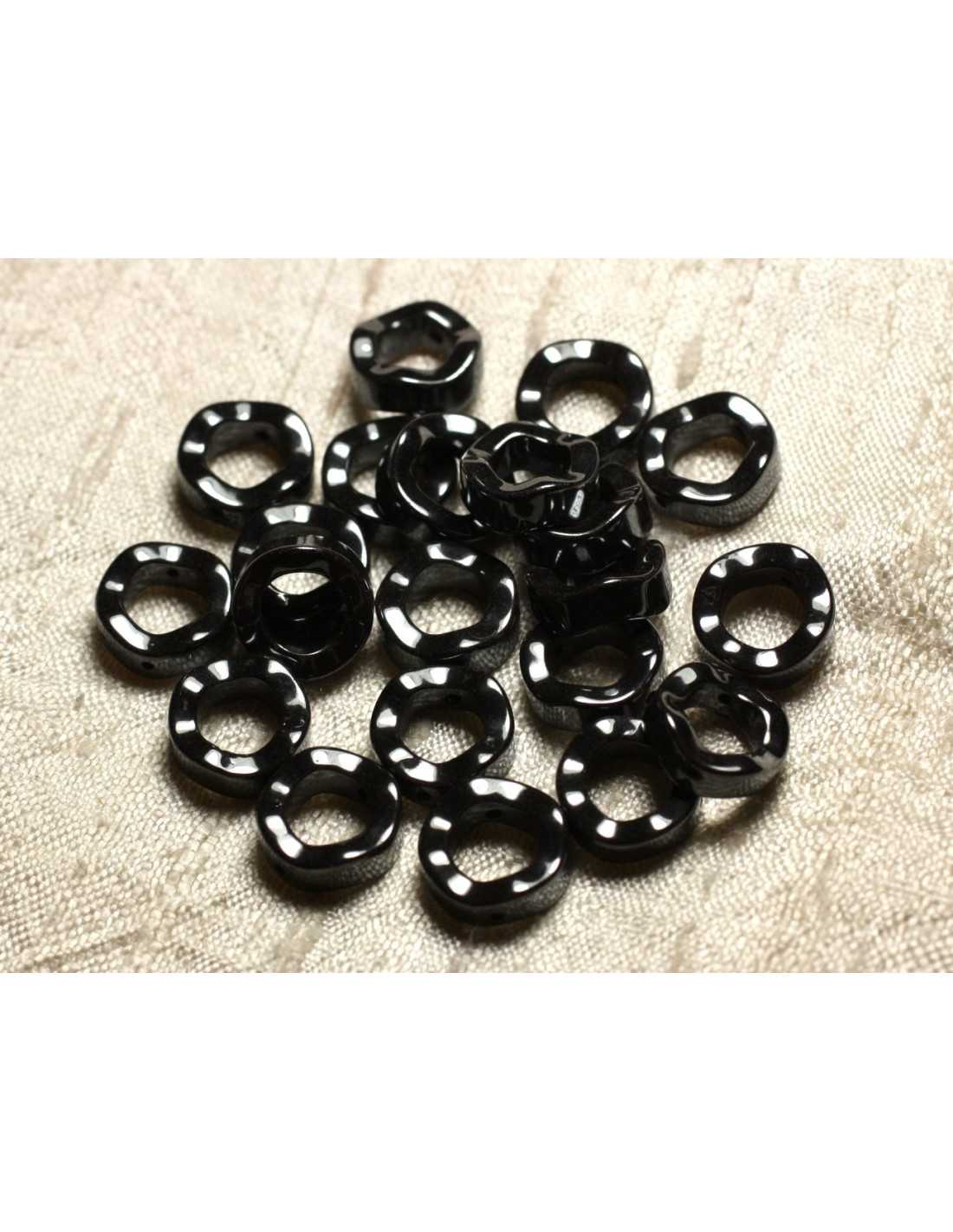 10pc - Perles Pierre Hématite Cercles Donuts Anneaux Ondulés 12mm Métal gris noir - 4558550010643