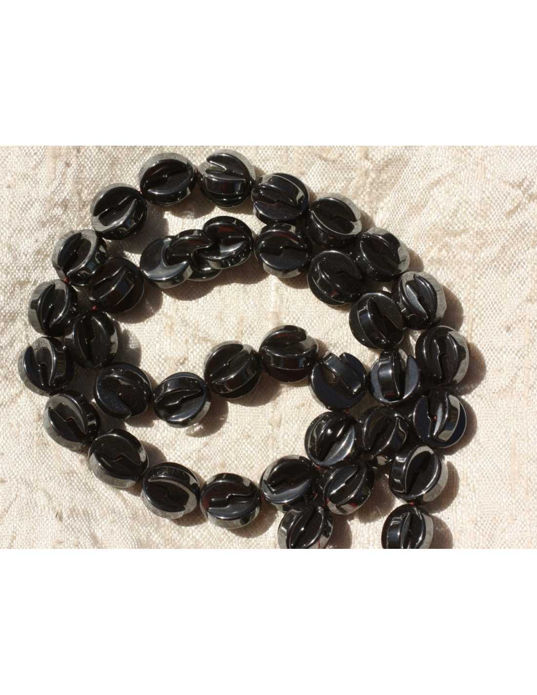 Fil 39cm 74pc environ - Perles Pierre Hématite Lettre C Croissant Lune 10mm Métal gris noir