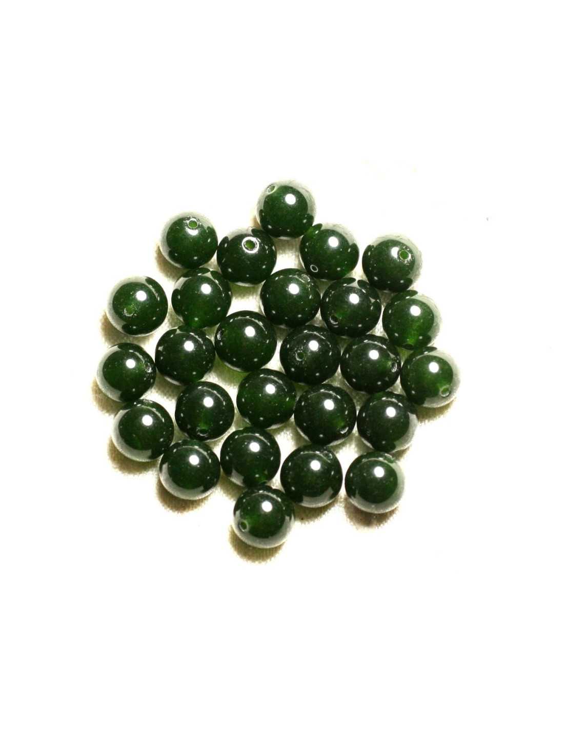 10pc - Perles de Pierre - Jade Boules 10mm Vert foncé Olive
