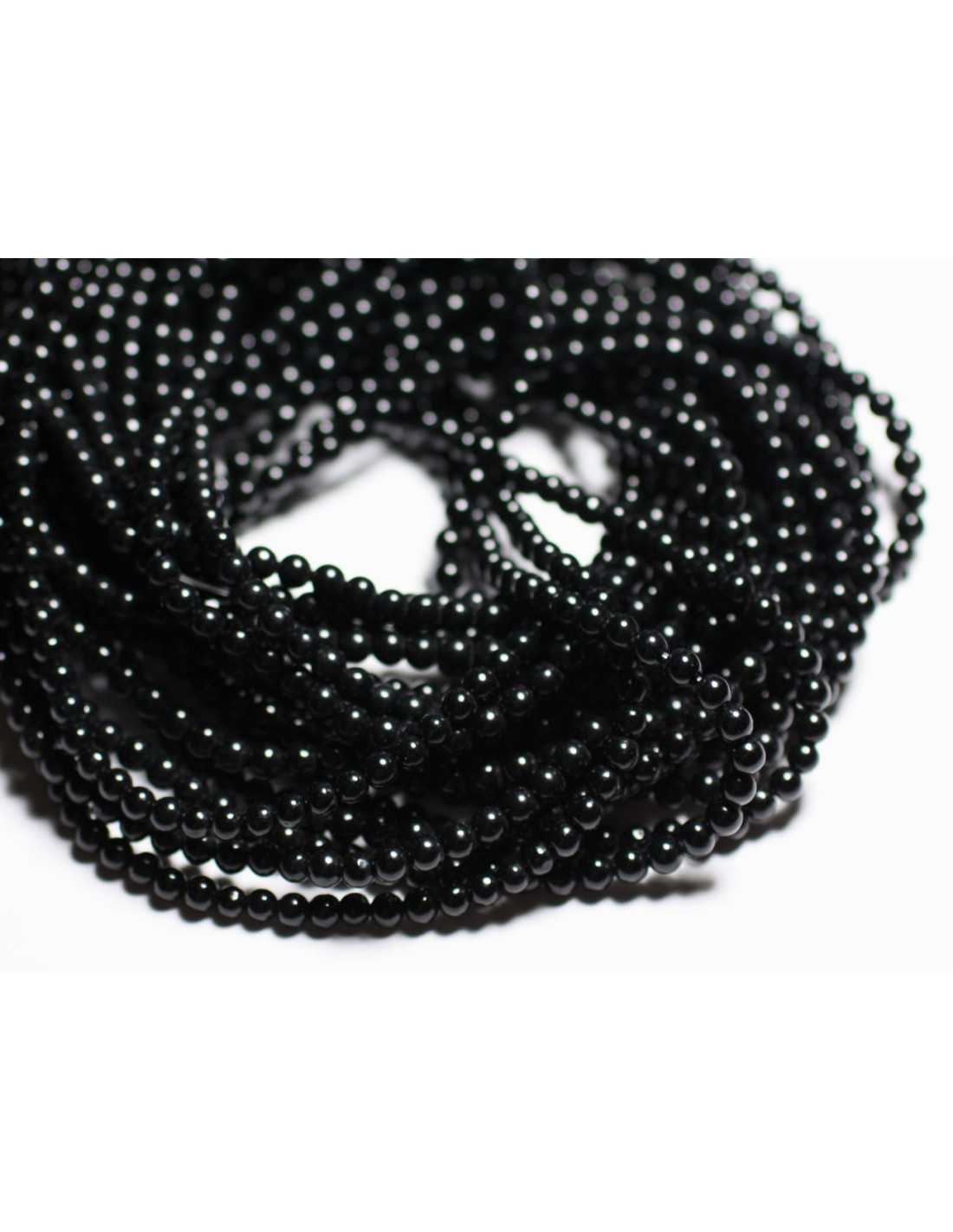 Fil 39cm 92pc environ - Perles Pierre Jade Boules 4mm Noir