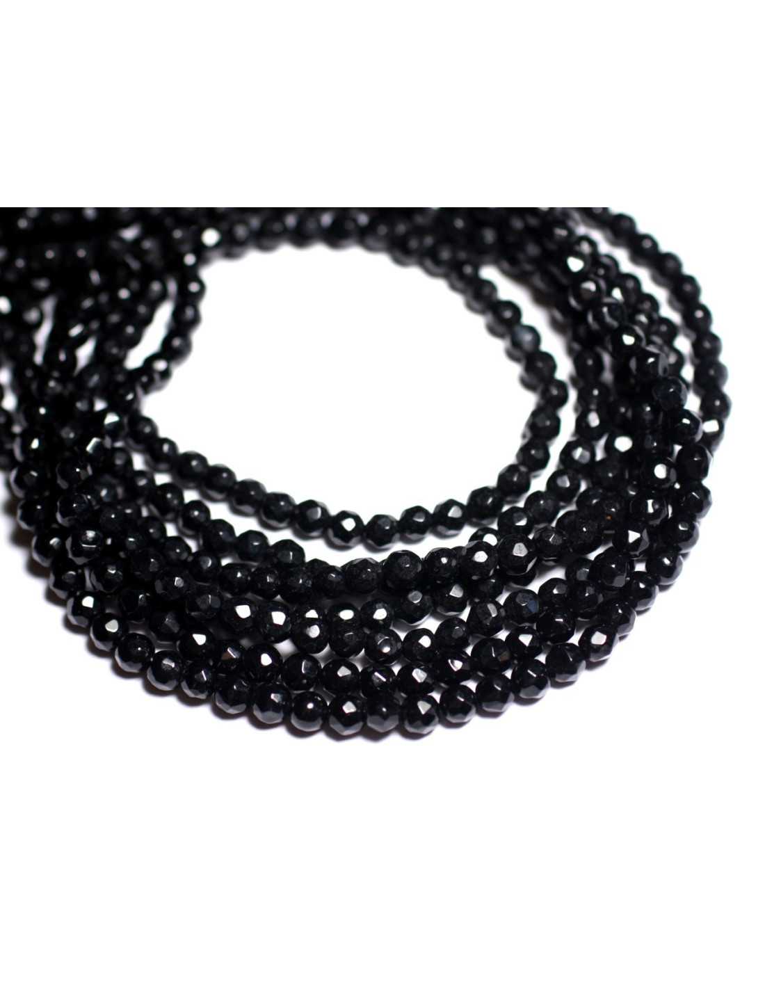 20pc - Perles de Pierre - Jade Boules Facettées 4mm Noir 4558550022424