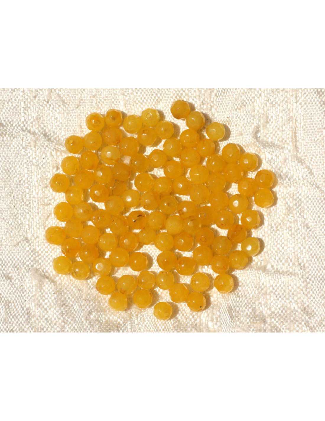 Fil 39cm 92pc env - Perles de Pierre - Jade Boules Facettées 4mm Jaune
