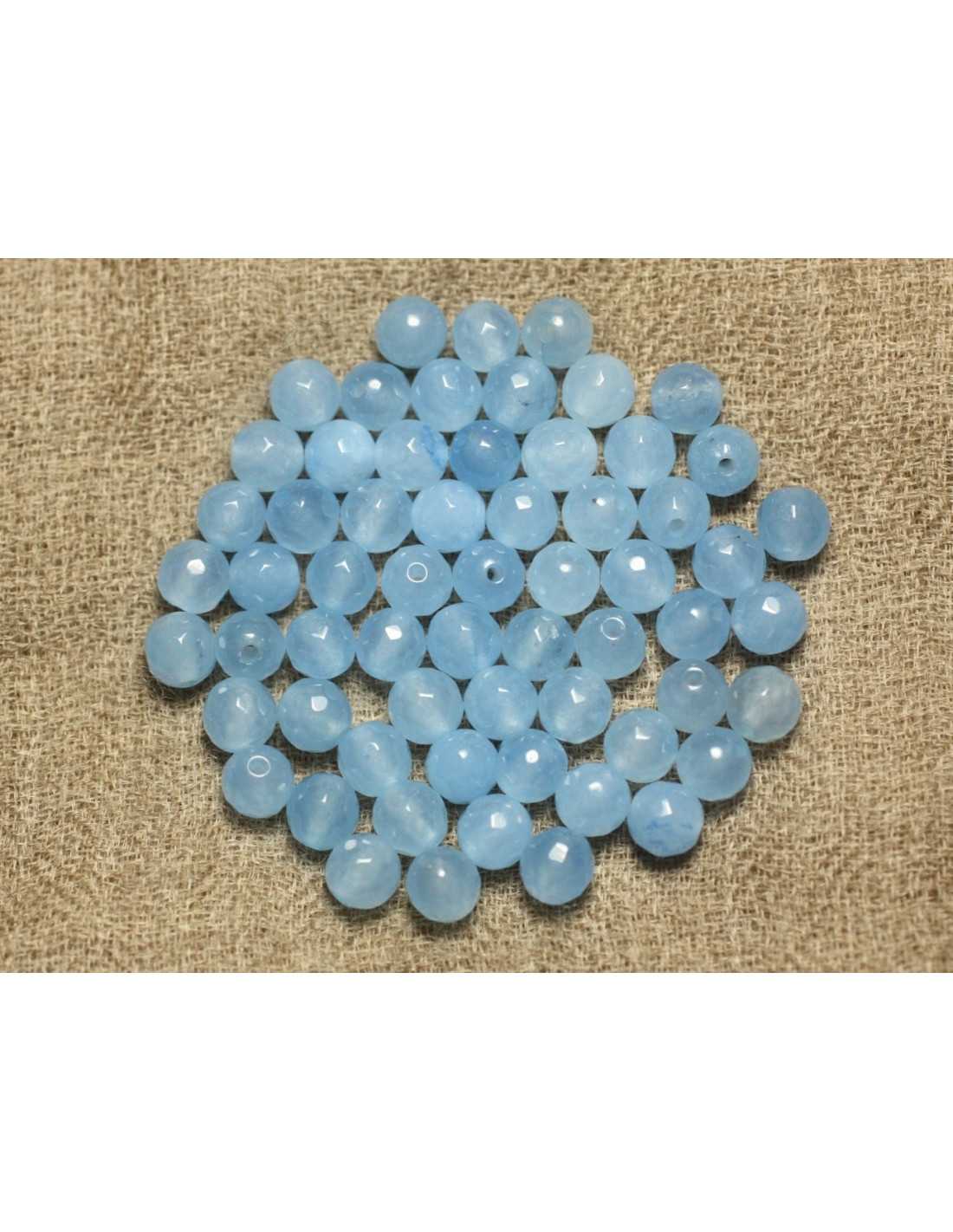 20pc - Perles de Pierre - Jade Boules Facettées 6mm Bleu Ciel