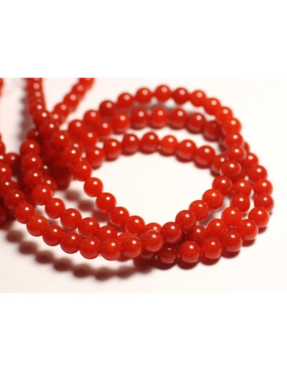Fil 39cm 60pc env - Perles de Pierre - Jade Boules 6mm rouge orange capucine
