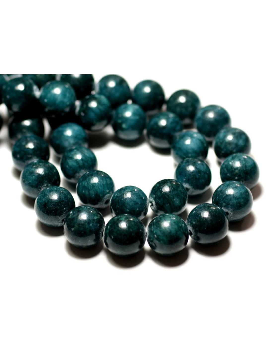 Fil 39cm 48pc env - Perles Pierre - Jade Boules 8mm Bleu vert Paon Canard