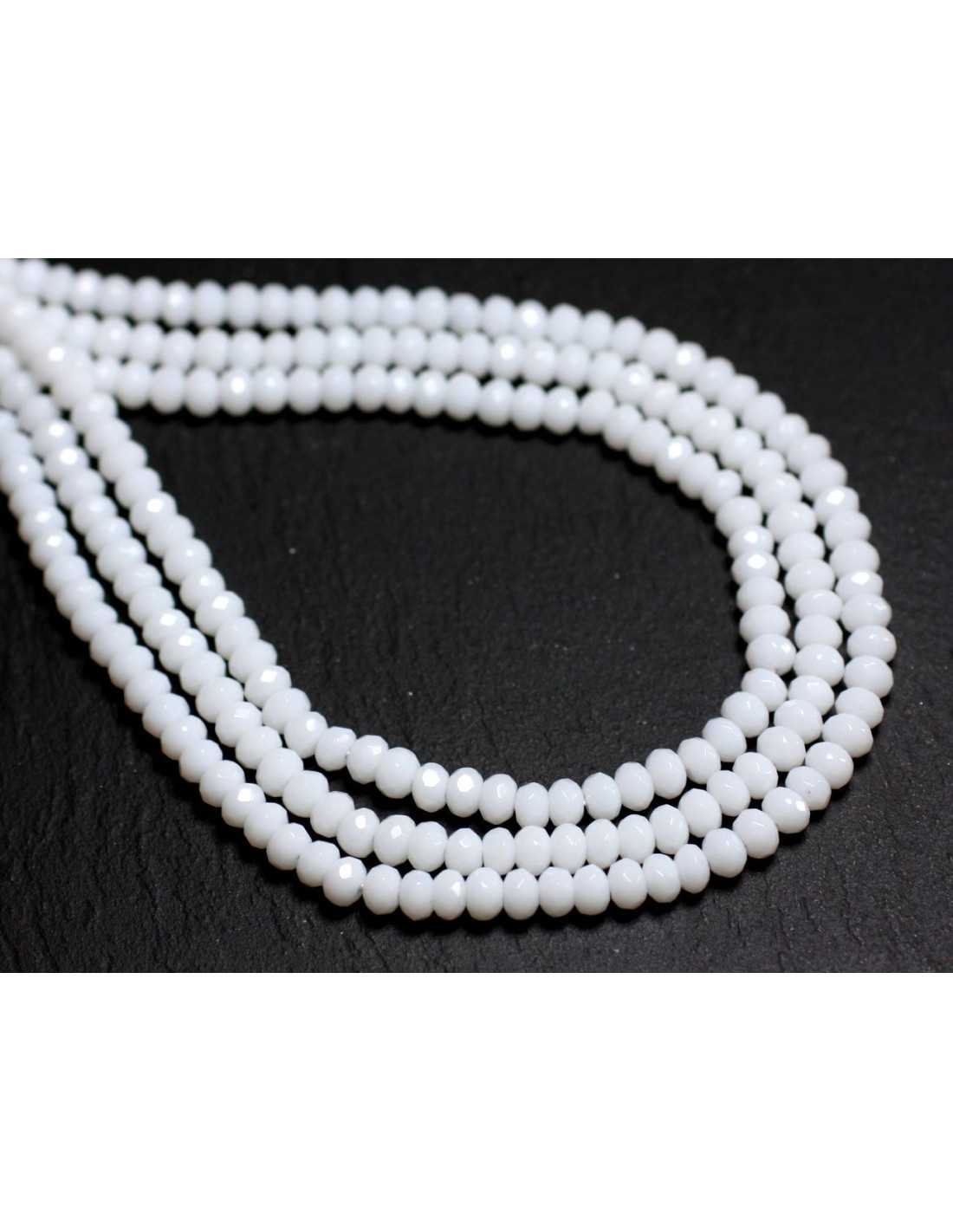 30pc - Perles de Pierre - Jade Rondelles Facettées 4x2mm Blanc
