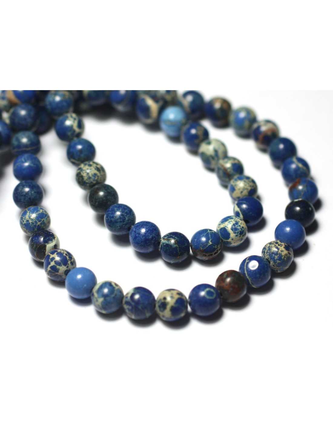 Fil 39cm 46pc env - Perles de Pierre - Jaspe Sédimentaire Boules 8mm Bleu nuit roi