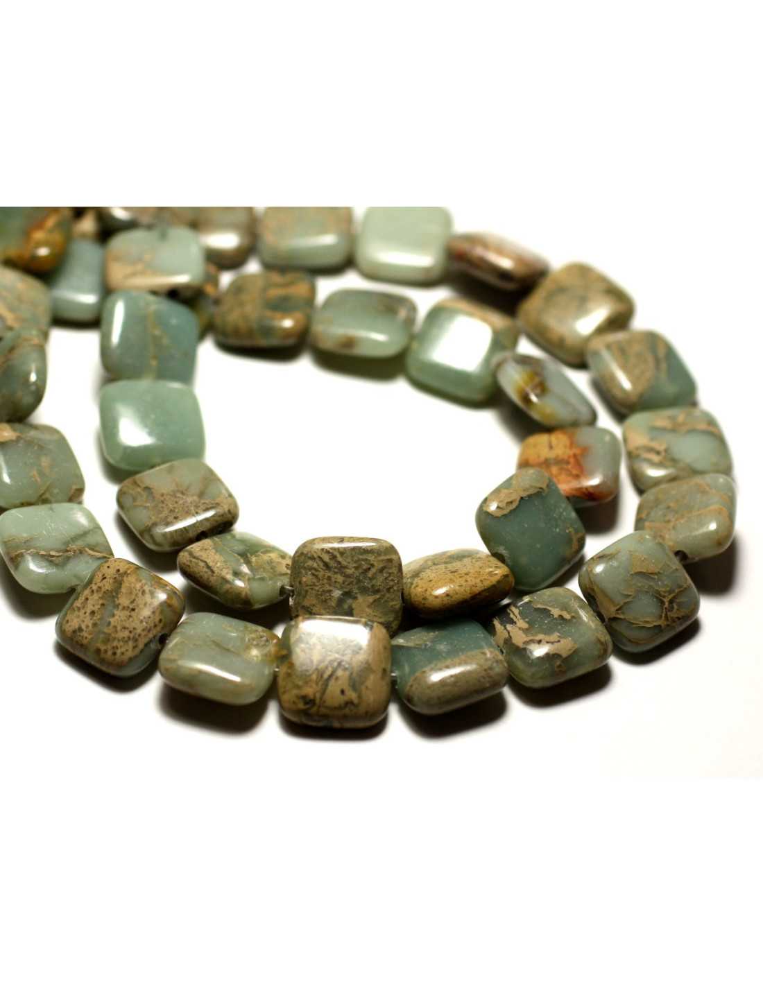 2pc - Perles Pierre Jaspe Aqua Terra Carrés 10mm Bleu Turquoise Beige - 7427039741408