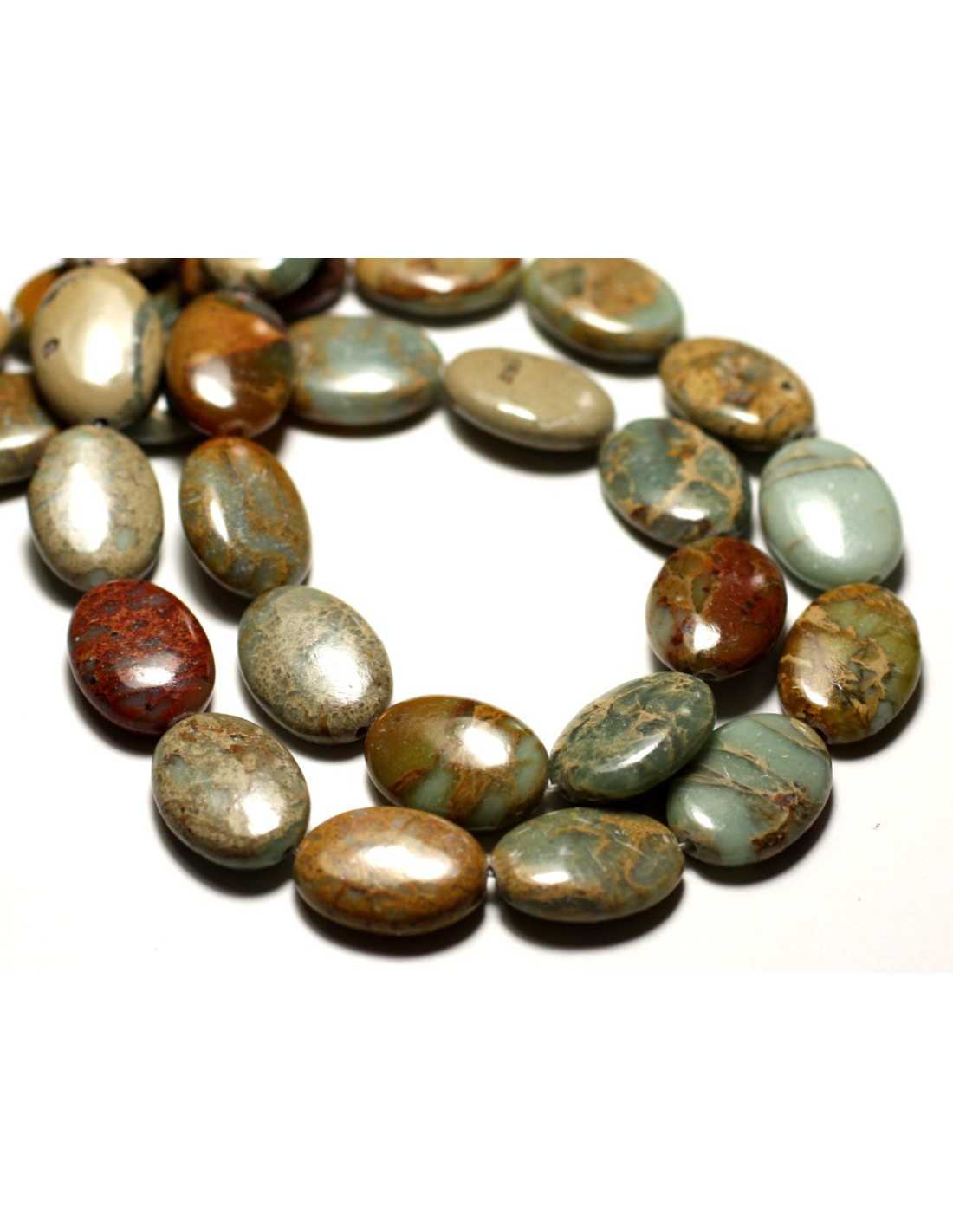 2pc - Perles Pierre Jaspe Aqua Terra Ovales 14x10mm Bleu Turquoise Beige - 7427039741460