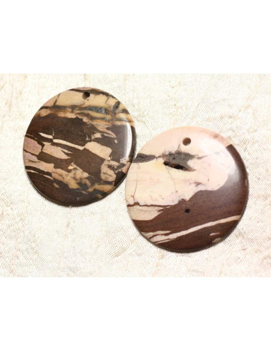 Lot 2pc - Pendentifs en Pierre - Jaspe Zèbre Rond 50mm avec imperfections N12