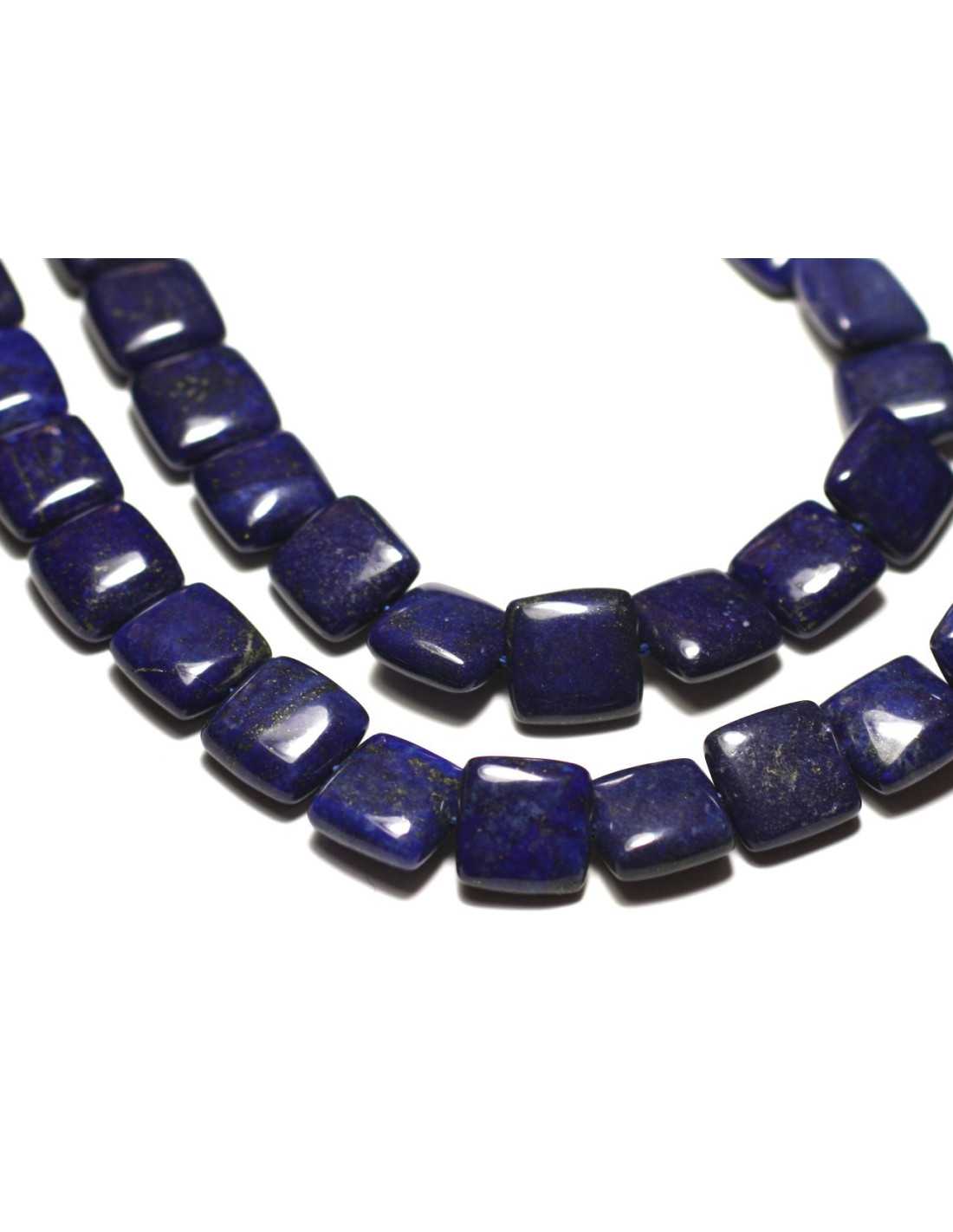 Fil 39cm 27pc environ - Perles Pierre - Lapis Lazuli Carrés 14mm bleu roi nuit doré