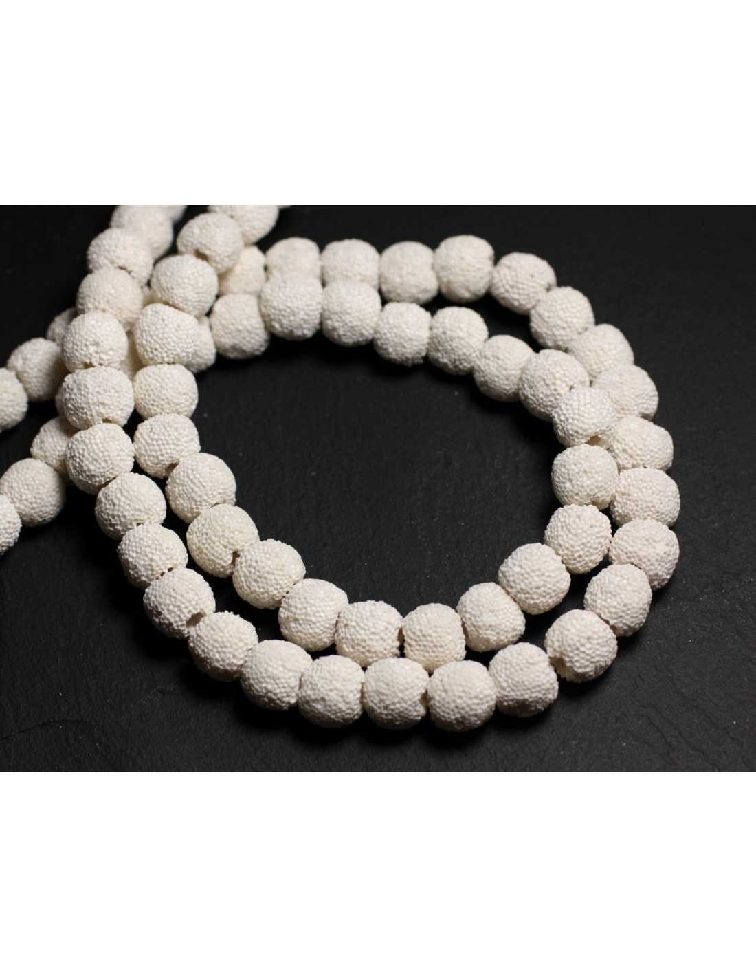 Fil 39cm 40pc env - Perles de Pierre - Lave Boules 10mm Blanc