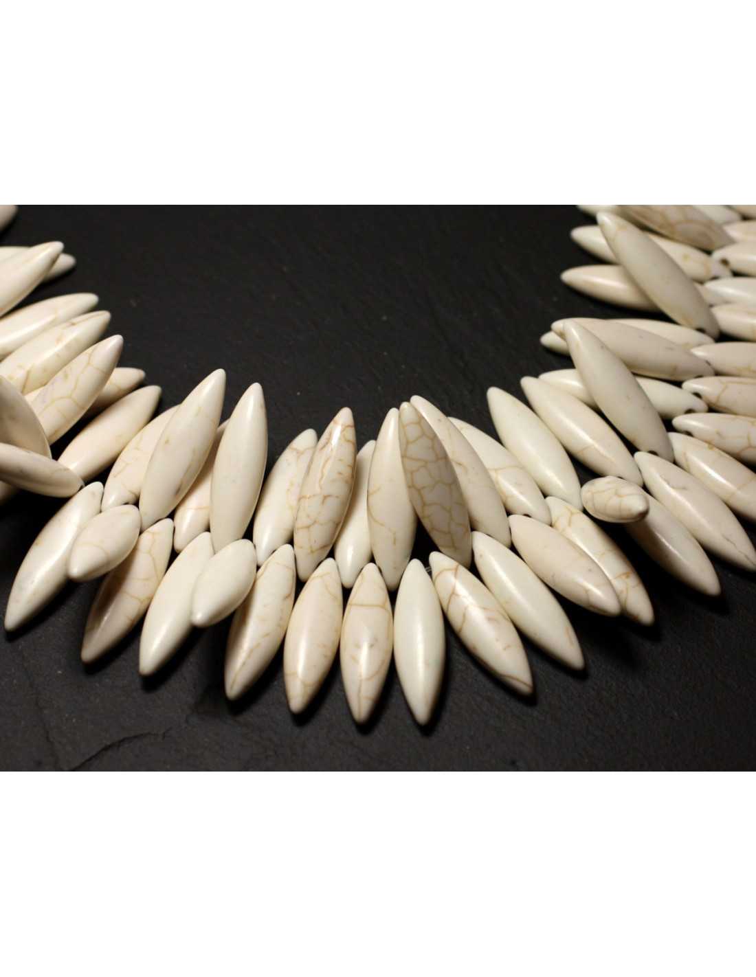 Fil 39cm 100pc environ - Perles Pierre Turquoise Synthese Marquise Navette Olive Ovale 28x8mm Blanc crème