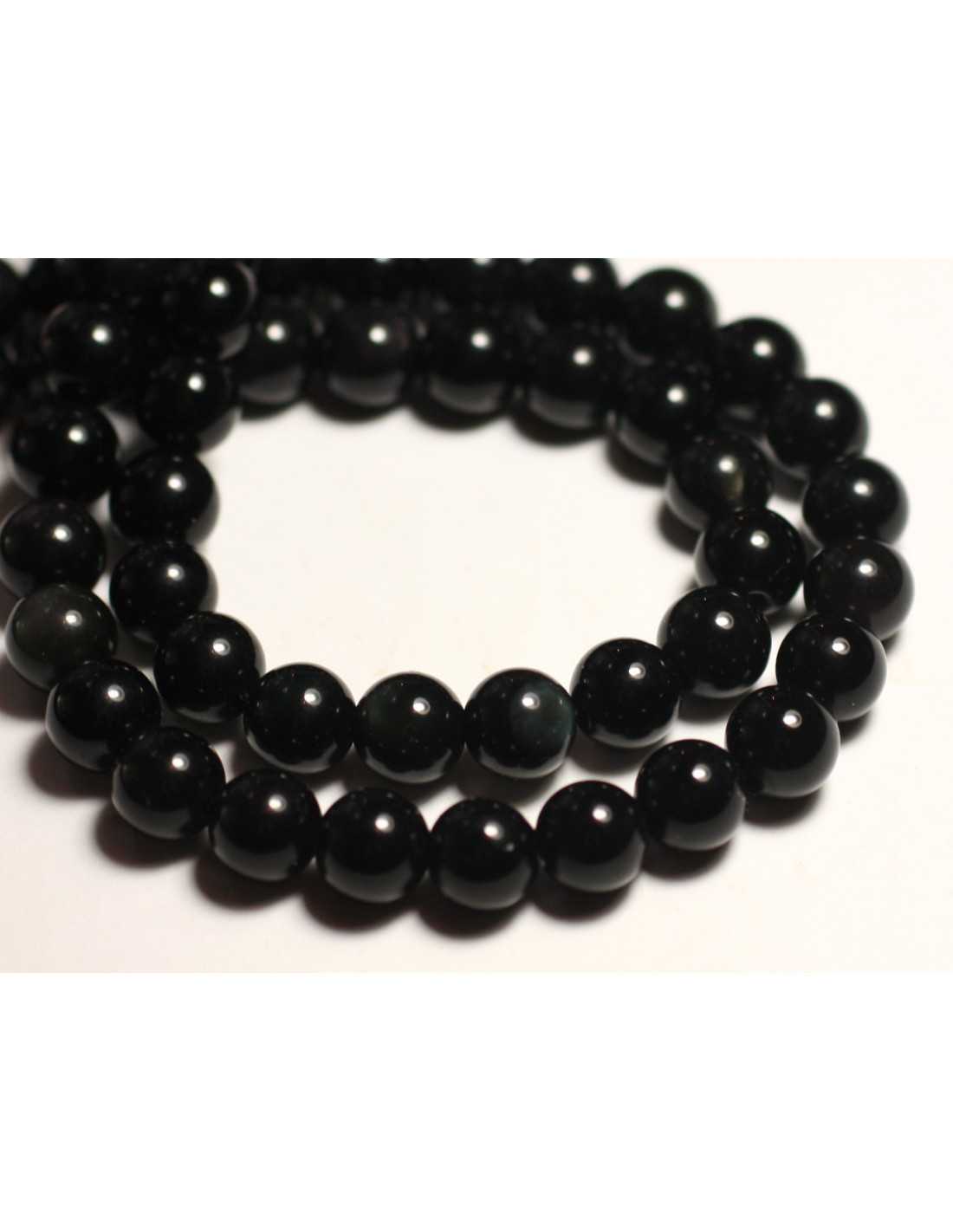 Fil 39cm 37pc env - Perles de Pierre - Obsidienne noire arc en ciel Boules 10mm