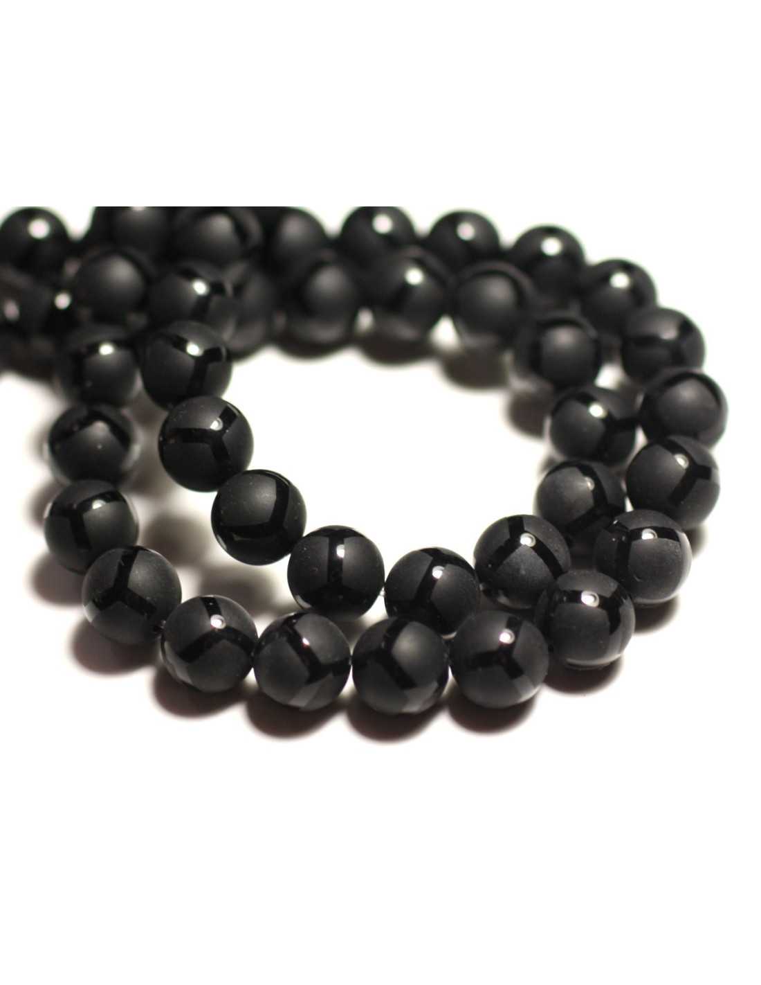 Fil 39cm 47pc env - Perles de Pierre - Onyx noir Mat sablé givré Ballon Boules 8mm