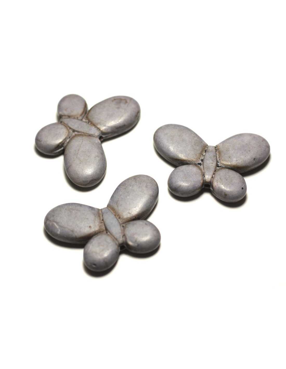 Fil 39cm 22pc env - Perles Pierre Turquoise Synthèse Papillons 35mm Gris Souris