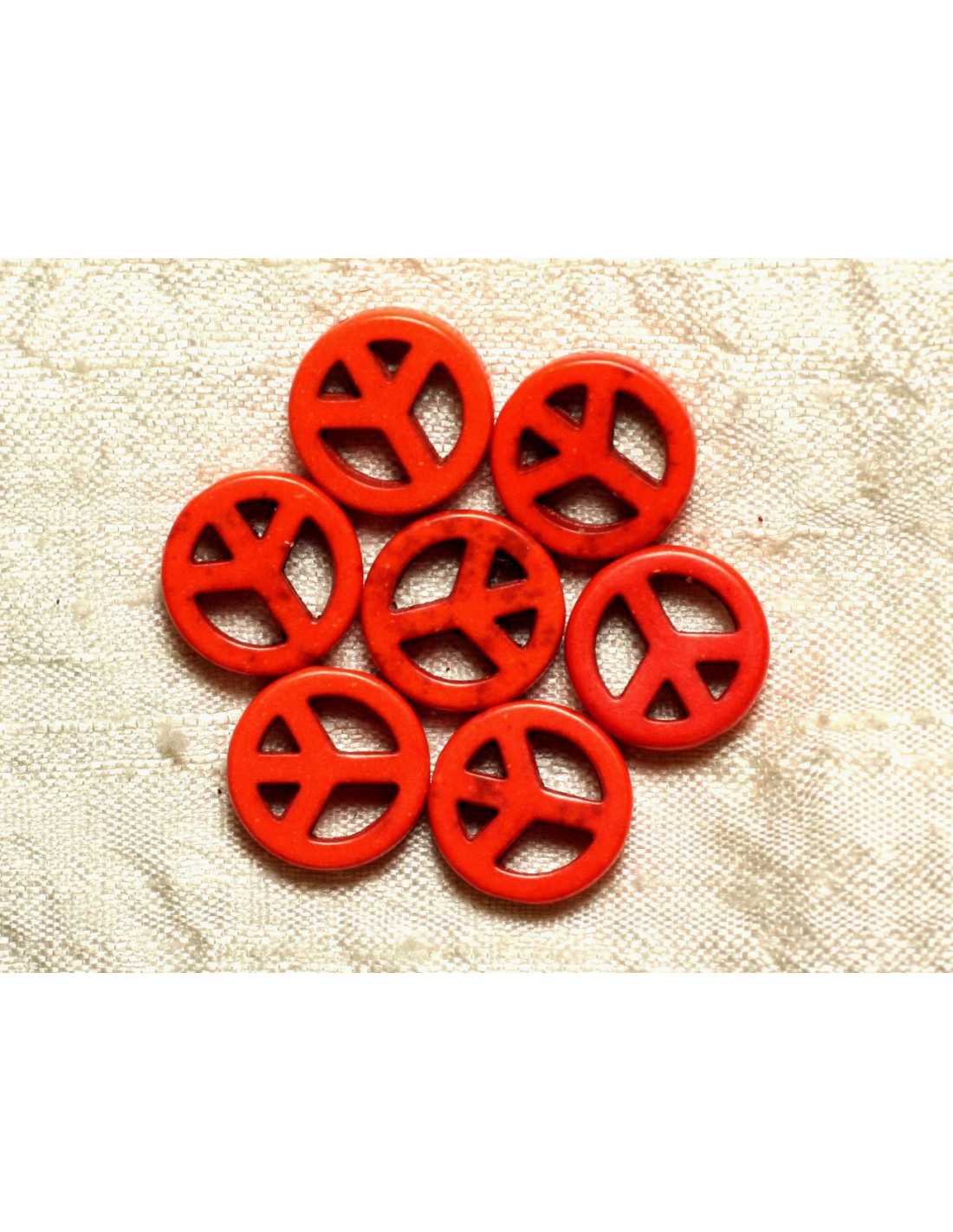 Fil 39cm 25pc env - Perles Pierre Turquoise Synthese Rond Rondelle Cercle Peace and Love 15mm Orange Fluo